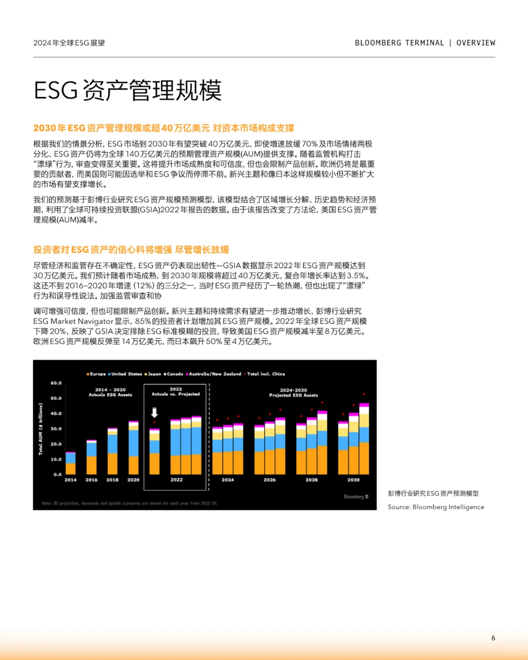 当前,ESG投资在全球范围内蓬勃发展。🌐 据统计,2022年全球ESG资产规模达到了30万亿美元。预计到2030年,这一数字将超过40万亿美元,显示出ESG资产的韧性和增长潜力。