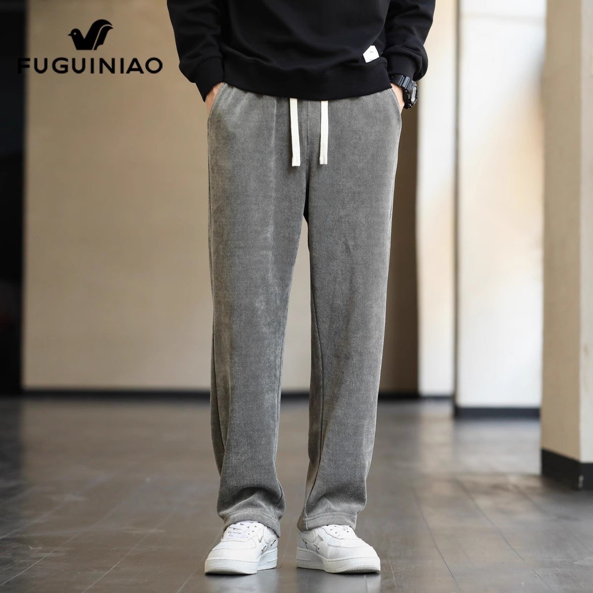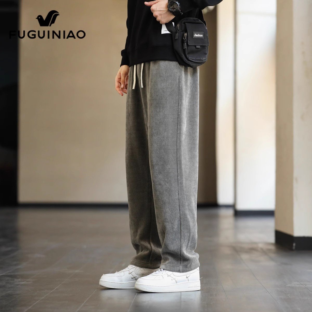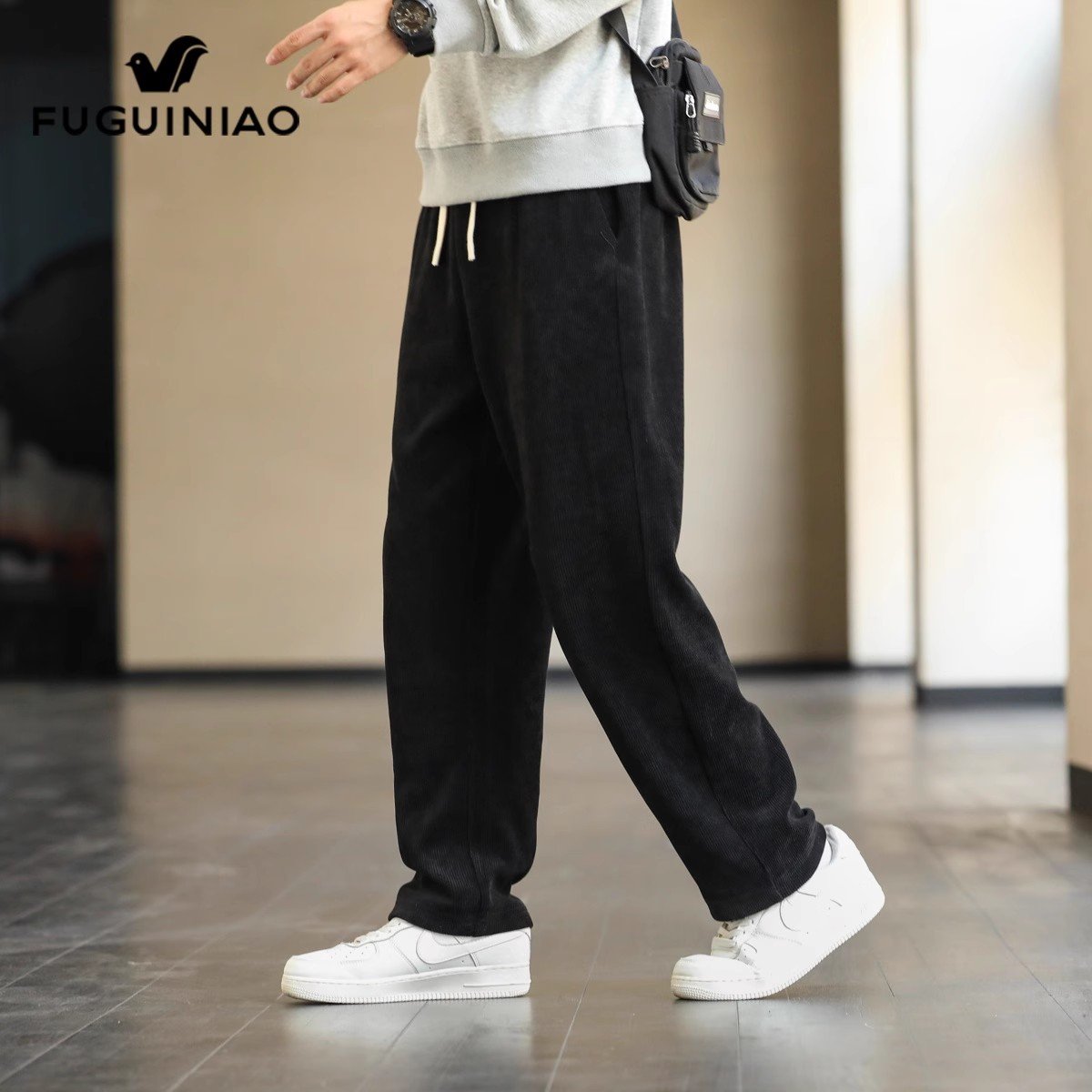 富贵鸟灯芯绒休闲裤男士直筒宽松卫裤2024年秋季潮牌阔腿长裤子男