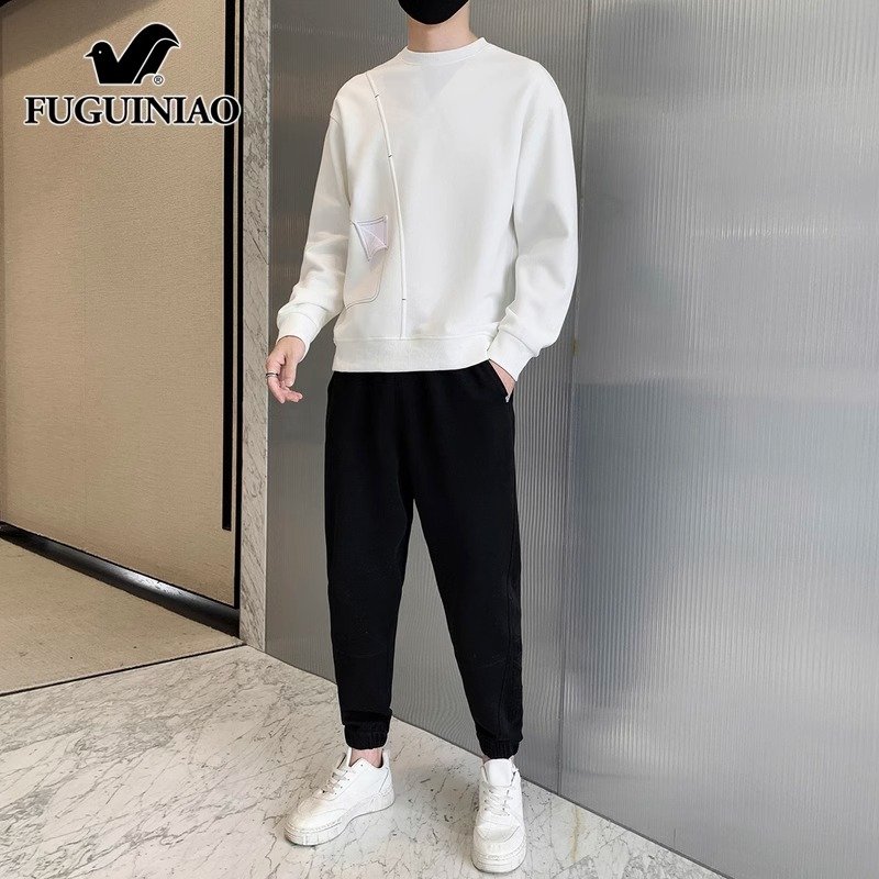 富贵鸟运动套装男士春秋新款潮牌休闲帅气圆领卫衣长裤搭配两件套