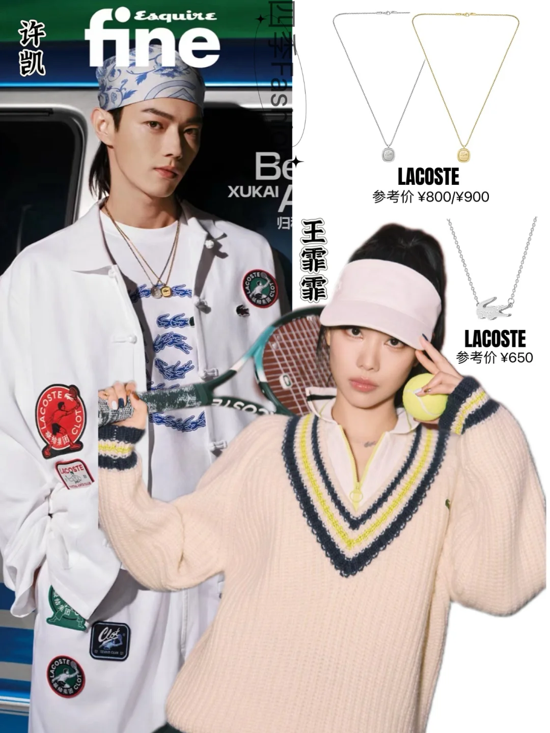 潮男潮女的点睛搭配永远在告诉我们选对配饰有多重要‼️ 整理了董思成、王子奇、许凯、王霏霏、王一博的同款饰品合集,叠戴好好看🤩质感很高级,竟才百元! LACOSTE除了配饰,服饰也很出彩,这个法国高端运动时尚品牌近日也首次将网球场带到中国长城,以PLAY BIG 为主题举办品牌盛典。 网坛传奇名将 Novak Djokovic和超具影响力艺人王一博共同亮相盛典活动,一度冲上热搜🔥