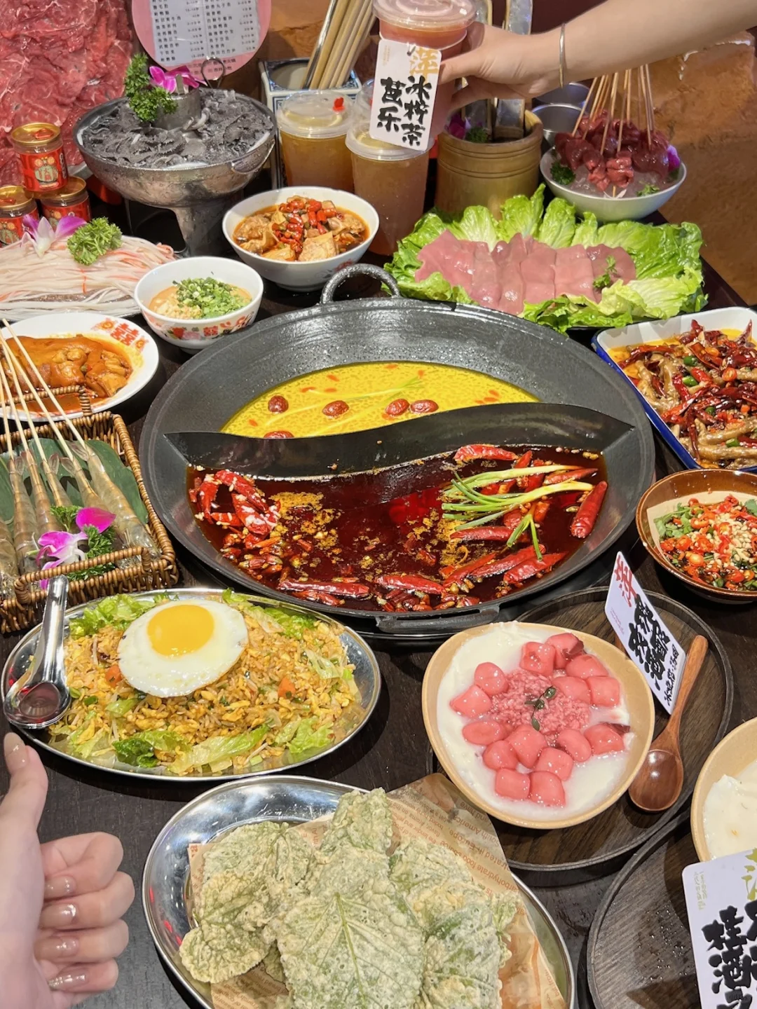卧槽卧槽!丽水也有了!!! 超级好吃的地摊火锅!真的好够味 土豆丝、腰片、猪蹄、蒜香牛肉 想到就流口水🤤 还有超多甜品选择 吃完再来一份现炒锅气满满的炒饭溜溜逢 太爽惹 唯一的缺点就是人气太旺了!