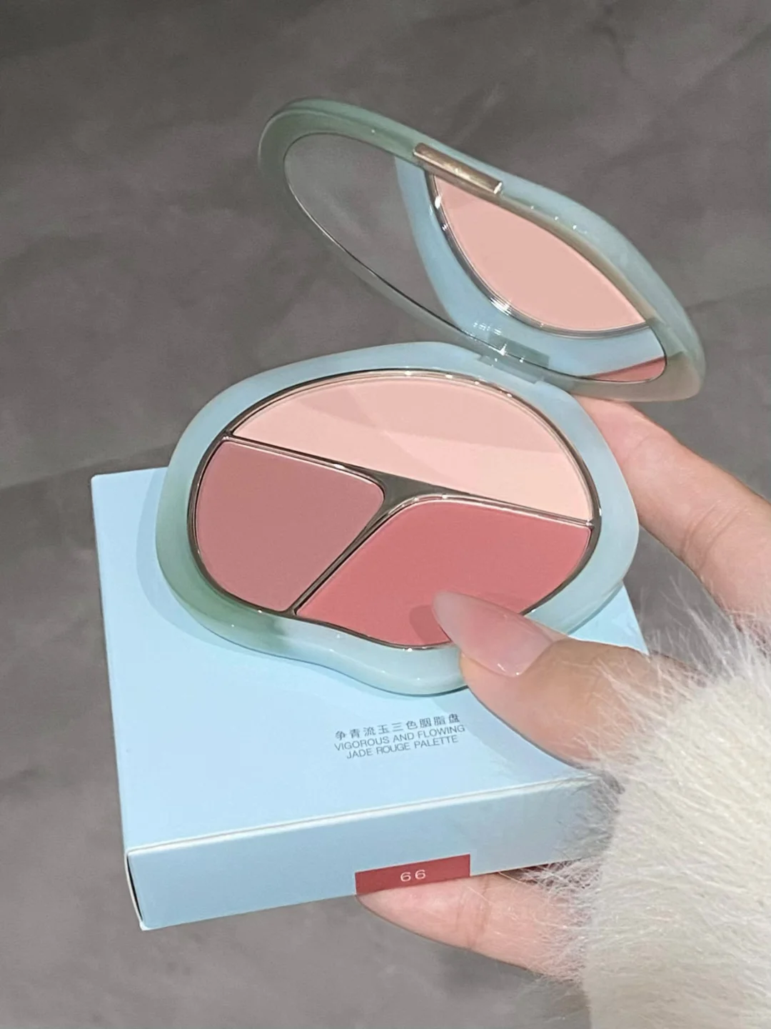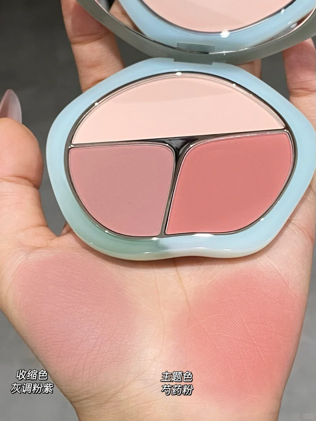 彩棠三色腮红出新色了! 这次这盘真的可以直接当面部综合盘用了 🥀「芍华」 好美的名字!! 刚打开就爱上了! 这不就是那种娇憨美女脸上的气血感 好秋冬! 是随便涂都好看的芍药粉!! 🥀膨胀色-肉桂色 裸感浅肉橘色 提亮膨胀面中超减龄 🥀主题色-芍药粉 玫调芍药粉 微醺感氛围拿捏! 温柔又显气色的血色感 🥀收缩色-灰调粉紫 灰调烟熏紫带点粉调 妆面立体感噌一下就来了 这块画眼影也很绝!