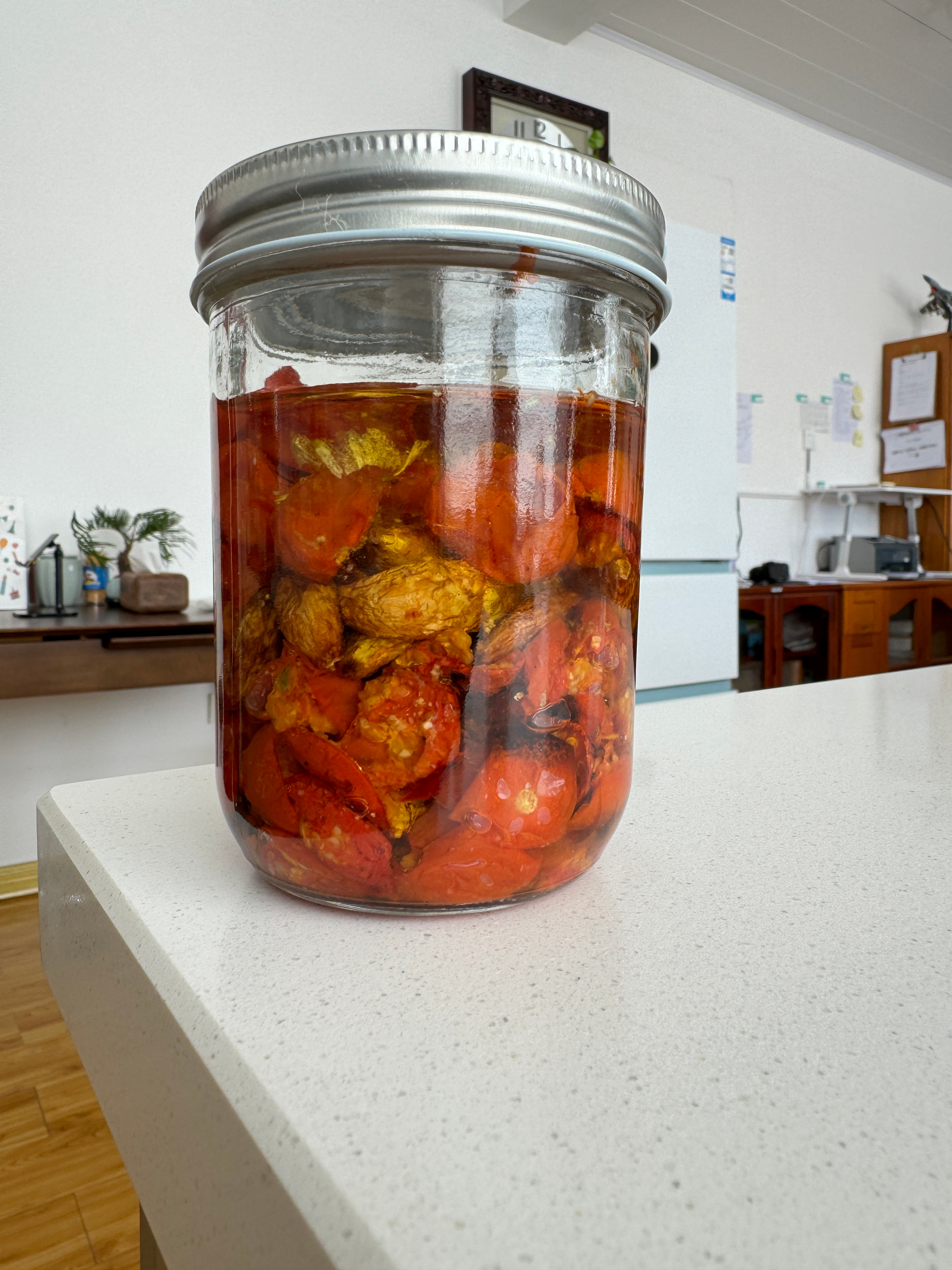 烤的小番茄一部分做了披萨,一部分做了橄榄油浸小番茄。