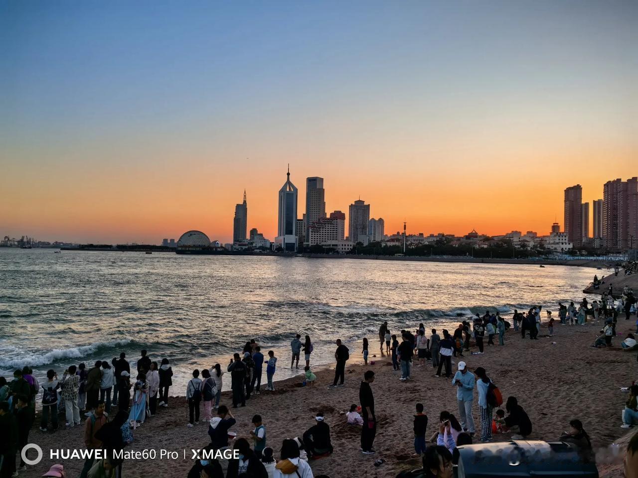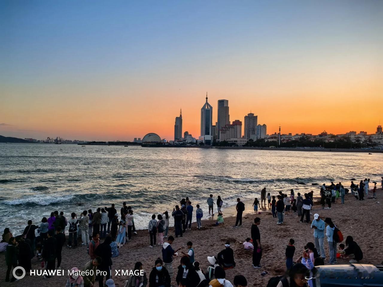 10月2日傍晚,青岛栈桥夕阳余晖照耀下,游人被栈桥美景吸引着,流连忘返,久久不愿