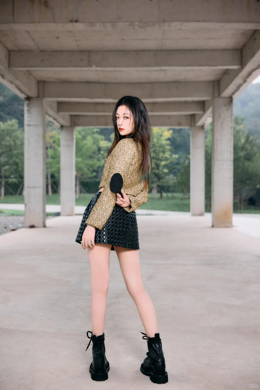 吴艳妮在成都穿着短裤大腿看起来很粗壮,表情自信又张扬