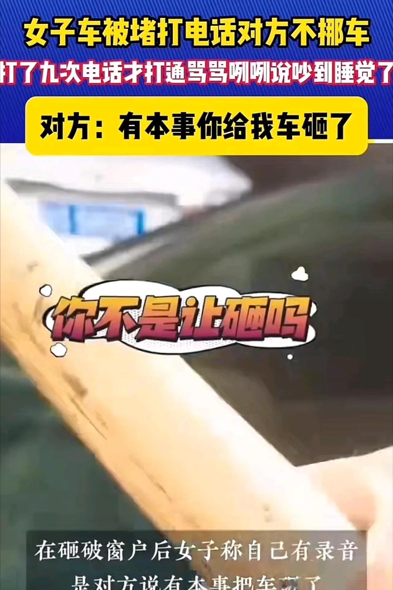 东莞,女子车子被堵了一个上午,打了9次电话才打通,可对方接通电却骂骂咧咧说吵到他睡觉了,他就是不挪车 有本事把他车砸了!于是女子拿锤头把车窗砸了,然后发视频说:“是你让我砸的,我都录音了!” 一段砸车的视频在网络上迅速传播,成为近期讨论的热点,视频中的女子因车辆被另一辆车堵住无法出行,愤怒之下,拿起锤子砸向了对方的车窗。 她一边砸车,一边用手机录下了整个过程,并将视频上传至社交平台,视频发布后迅速引发了广泛关注和讨论,短时间内积累了大量的点赞与评论,网络舆论随即分裂为两派。 支持女子的网民们认为,这种行为是对不文明停车的一次必要反击,甚至有人称赞她“替大家出了一口气”。 在拥挤的城市中,不文明停车现象屡见不鲜,很多人都有过类似的困扰,尤其是当他们急需出行时,却发现自己被别人的车辆无情地挡住。 一些人认为,面对这种不守规矩的人,应该用强硬的手段来回应,视频中的女子被认为是一位“正义使者”,她的行动鼓舞了许多人,尤其是那些曾经因为被堵而无计可施的人。 但与此同时,也有大量网民对女子的行为提出了批评,批评者认为,尽管对方的停车行为无疑是不文明的,但女子的过激反应同样不可取。 私自破坏他人财物无论如何都不能被接受,这种行为不仅可能让她面临法律责任,更会导致更多的社会冲突和恶性事件的发生。 有人指出,面对类似的情况,女子本可以通过报警或者联系有关部门来解决,而不是选择直接破坏他人的车辆。暴力只会加剧问题,而不是解决问题。 随着讨论的深入,事件的前因后果逐渐浮出水面,原来,当天早晨,这名女子准备驾车外出时,发现车库前被另一辆黑色轿车挡住。 她立刻感到一阵烦躁,因为这已经不是第一次发生这样的事情了,多次拨打挡车车主的电话,却始终无人接听,时间一点点流逝,女子的情绪也逐渐从焦急变成了愤怒。 眼看耽误了一上午的时间,她再次拨打了车主的电话,这次电话终于接通,但电话另一端的车主却带着明显的恼怒,言辞间不仅没有丝毫歉意,甚至还用挑衅的语气说,如果不满意就砸车。 听到这番话,女子的愤怒瞬间爆发,她决定不再忍让,拿起锤子砸向了车窗,这一决定的后果不仅仅是视频中的车窗破碎声,它还引发了潜在的法律问题。 很多网民在讨论中提出了一个关键问题:车主“同意”她砸车,这是否可以成为她免责的理由?对此,法律专家给出了明确的解释。 在法律上,砸车行为构成故意损坏他人财物罪,无论对方是否“同意”,这种同意是否能构成有效的法律许可依然是非常复杂的。 专家指出,电话中的车主明显是在情绪化状态下做出的言辞,其“同意”并非法律上有效的同意,不能作为女子免除责任的依据。 根据《民法典》及相关刑法规定,故意损坏他人财物,如果损失超过一定金额,可能构成刑事犯罪,女子需要为她的行为承担法律后果。 尽管车主的不文明停车行为无疑是事件的起因,但这并不能成为砸车行为合法化的理由。 法律在处理这类问题时,通常会考量行为的合理性和合法性,即便车主的挑衅令人愤怒,作为受害方的女子也应当通过合法的途径寻求解决,比如向物业、交警部门或警察求助,而非采取自力救济的方式。 除了法律责任的探讨,此事件还引发了关于社会行为规范的更广泛讨论,车主的不文明停车行为在某种程度上反映了当今社会中一些人对公共秩序的漠视。 这种行为不仅影响了他人的生活,还可能引发更大的社会矛盾,在快节奏的城市生活中,停车问题日益严峻,尤其在住宅区和商业区附近,停车位供不应求的情况屡见不鲜。 一些车主为了自己方便,将车辆随意停放,往往忽略了其他人的需求和权利,这种不文明停车行为已成为城市管理中的一个顽疾,急需通过法律法规和公共意识的提升来改善。 与此同时,事件中的女子采取了极端的方式来解决问题,这同样引发了公众对冲突处理方式的反思。 在现代社会,个人面对不公时有多种合法途径可以寻求帮助,但部分人却倾向于用极端手段表达愤怒。 这种行为不仅可能加剧问题,还可能引发更多的社会不稳定因素,比如,这次的砸车事件如果不加以有效处理,很可能会让更多的人效仿,甚至可能引发一系列的报复行为,使得问题更加复杂化。 通过这起事件,我们不难看出,当今社会对文明行为的期待和对不文明现象的反感都达到了一个新的高度。 无论是车主的不文明停车,还是女子的愤怒砸车,都暴露了当下社会在公共行为和冲突处理方面的不足。 只有当每一个人都能够自觉遵守社会规则,尊重他人的权益,我们才能避免类似的事件再次发生,构建一个更加和谐的社会环境。 信息来源:河南乡村频道,2024年9月20日,《女子车被堵打电话对方不挪车 对方:有本事你给我车砸了》