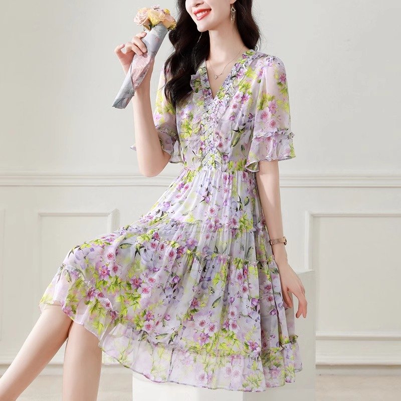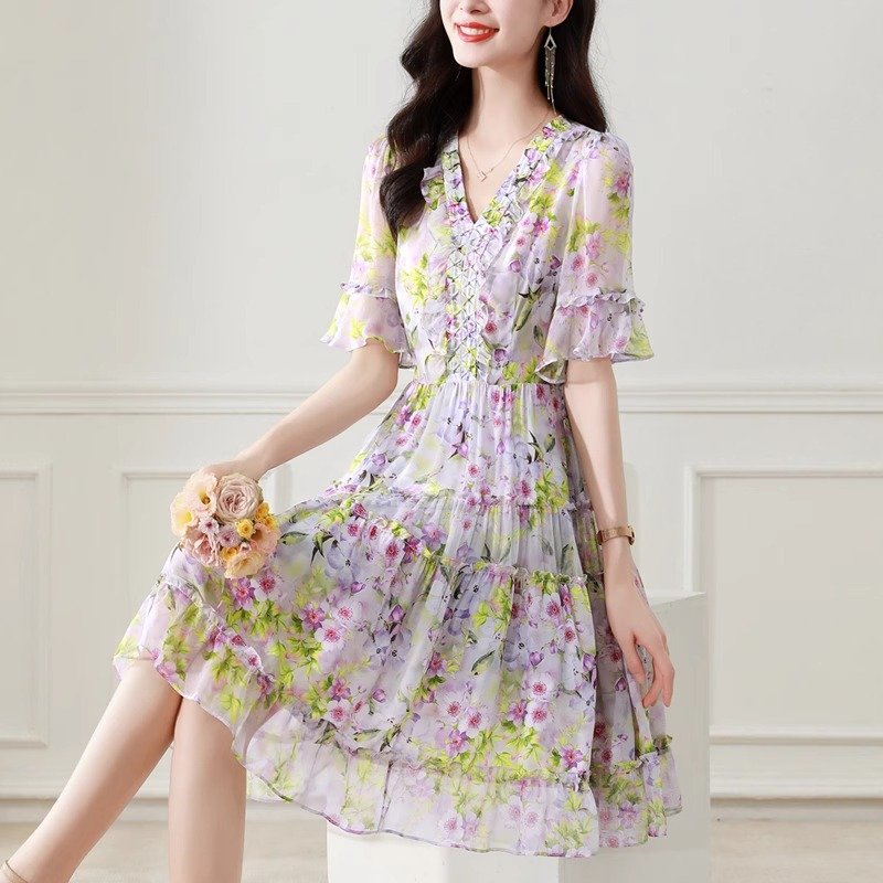 真丝顺滑,轻盈如羽,夏日内敛奢华之选,绽放女性温婉光彩。连衣裙真丝连衣裙桑蚕丝连衣裙
