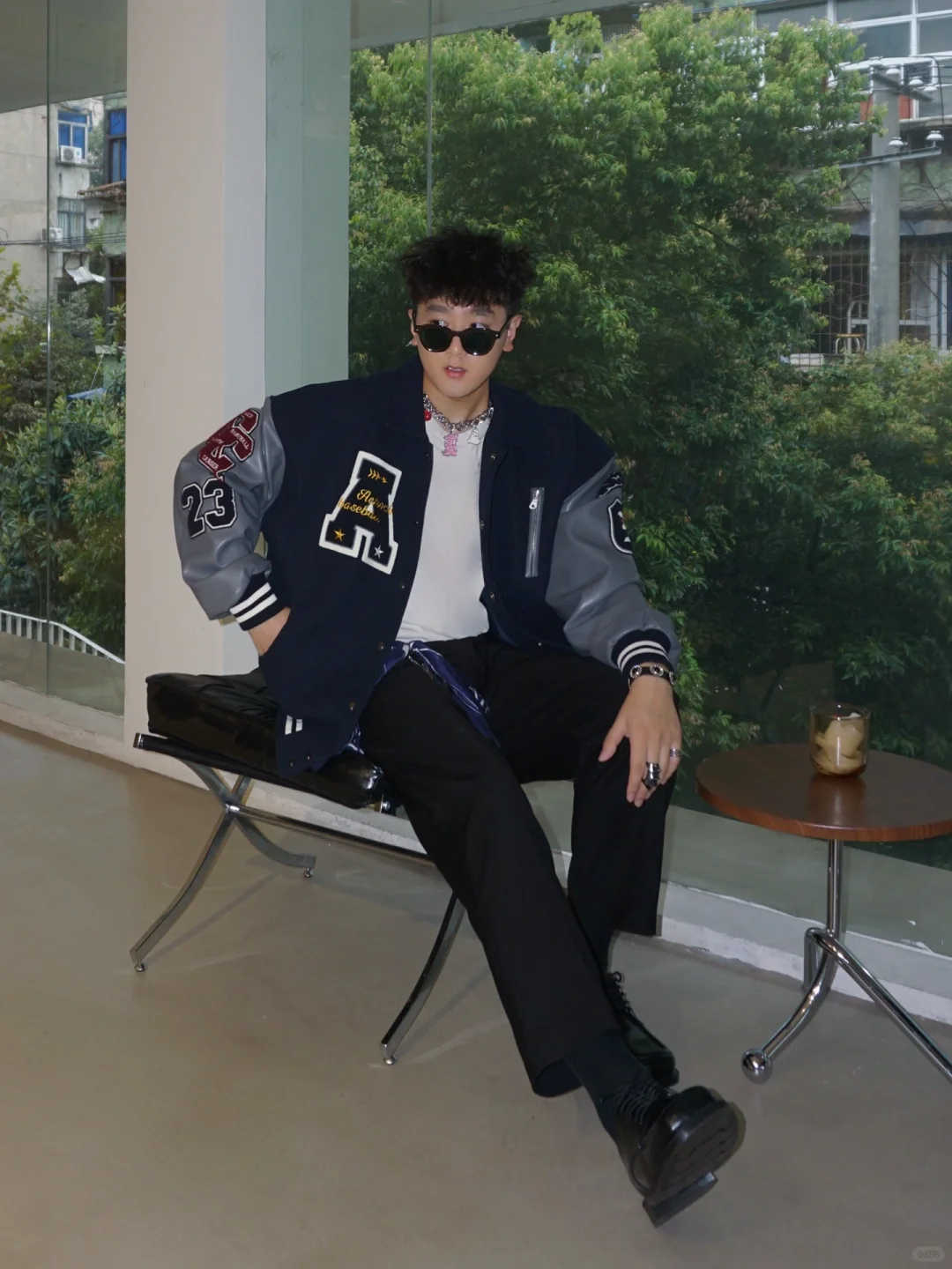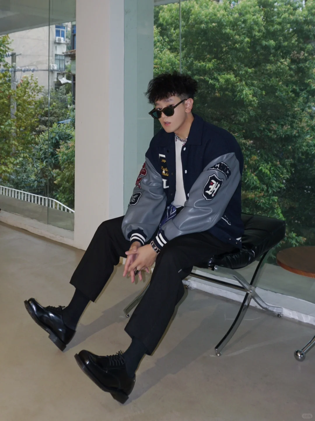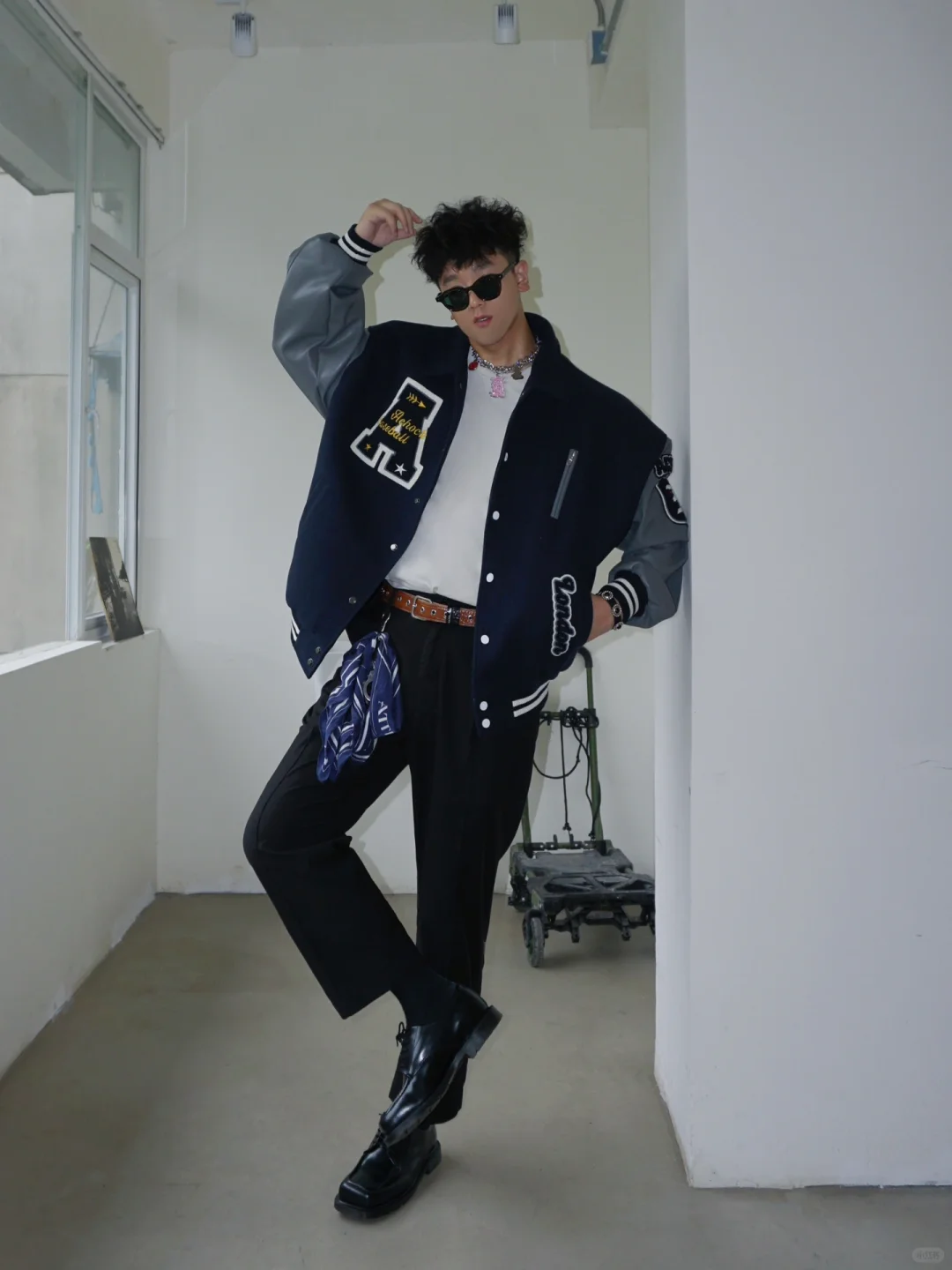 棒球服配西裤也太雅痞绅士了吧▪️❕ 秋冬穿暗蓝色🌊莫名自带一种学院风~ 悟出Athflow新奥义💡如今天Outfit示范: 用绅士感裤装➕街头风的单品叠搭即可~ 蓝丝巾不一定要系脖领处✔️也太严肃了, 系腰间的浪漫是顶男的小把戏✨拿捏了~ 新入的马丁方头德比▪️还挺有时装那味儿, 隐隐显高🦵再卷个头发出门别叫我韩男嗷💯~ - ▪️Fitcheck▪️ 👔: 👖:🕶️: ACCRUE 💎:BAI 👞:Martens马丁 - -