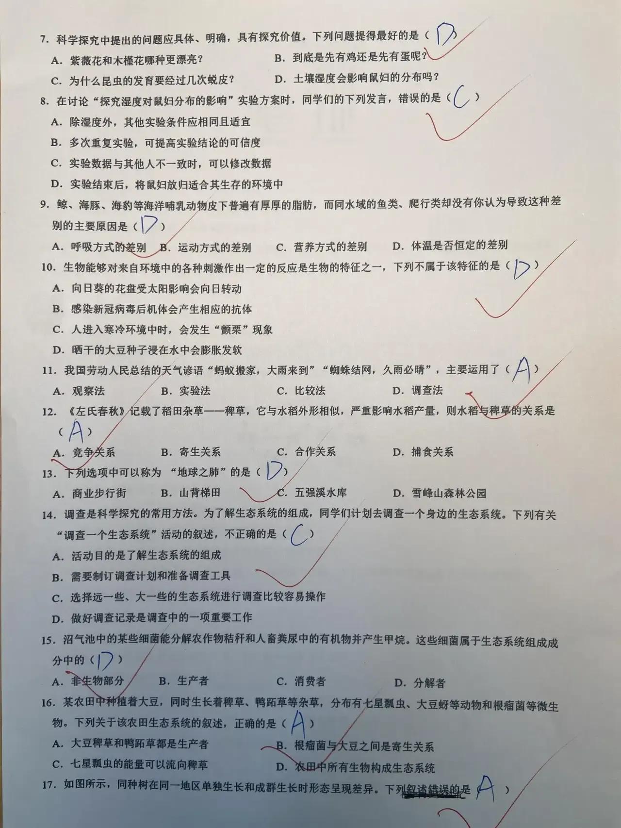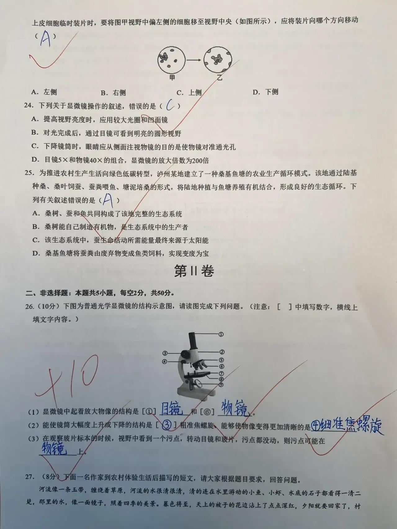 2024七上生物第一步月考达标测试卷。#七年级科学月考#