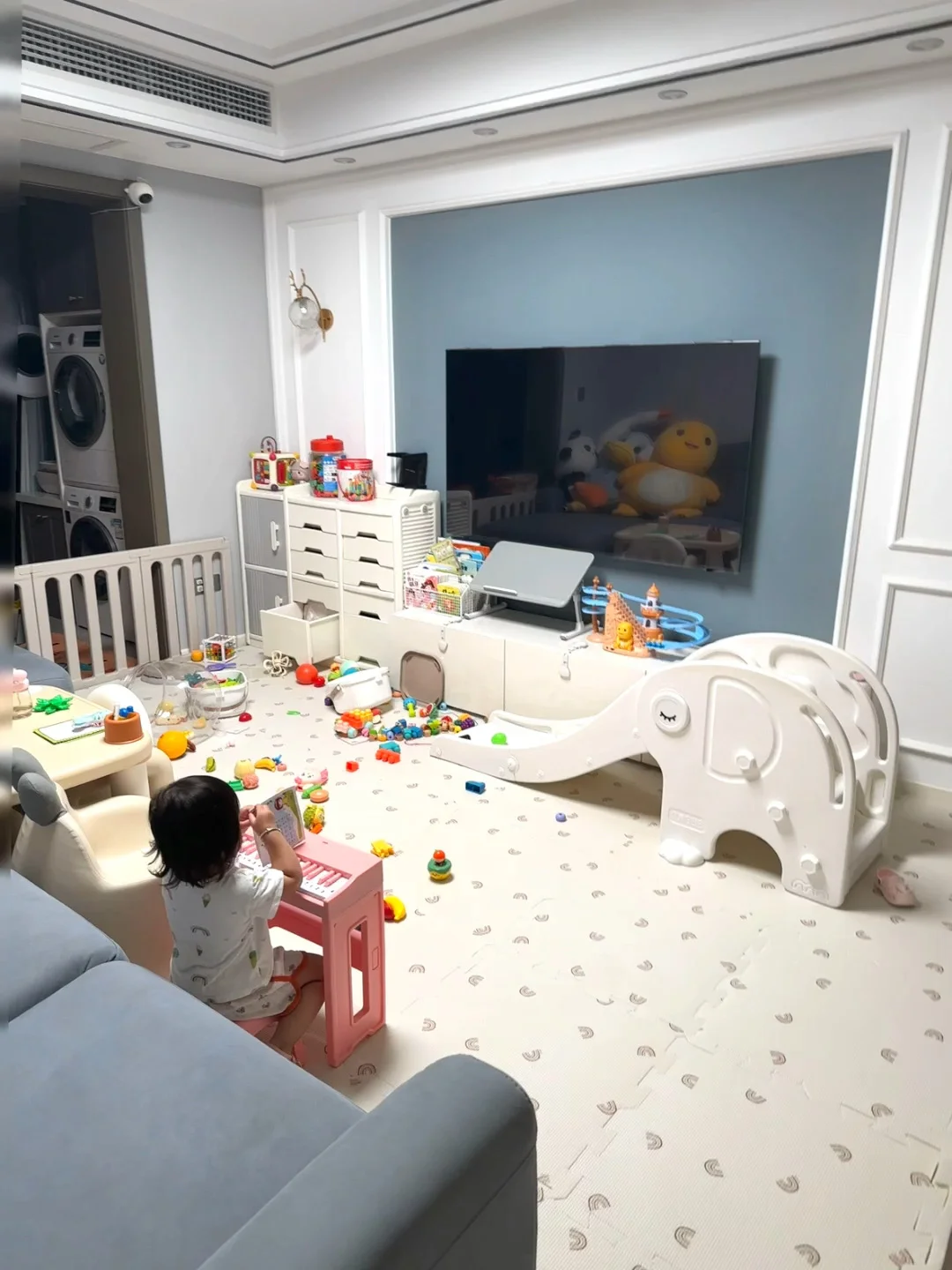 每当看着你在偌大的空间尽情玩耍 我就一点儿也不后悔 放弃整个客厅改成你的游乐区✌️ 碎碎念: 大家快两岁的娃都玩什么呢? 又想给她更新玩具了!