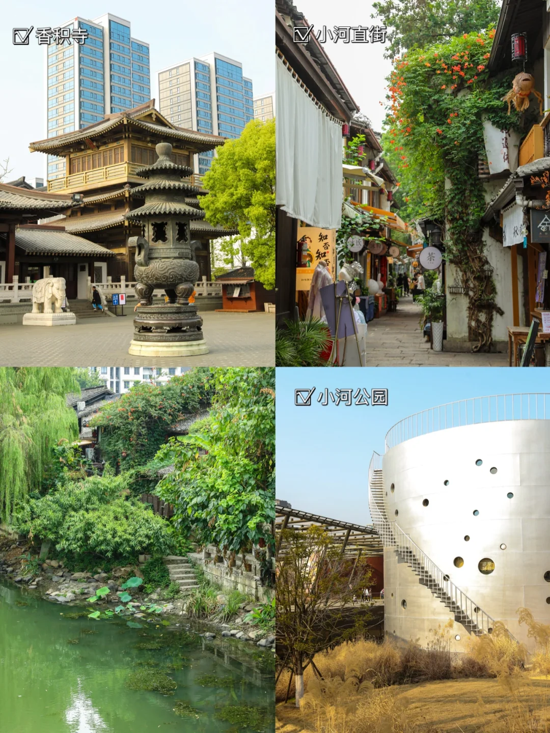 · 听我的,真正的杭州底蕴不在湖滨… 国庆来杭,如果想好好感受一下老杭城的南宋底蕴与运河文化,可以走走这两条citywalk路线,好逛好吃又好拍📸 · 1️⃣「南宋古韵历史文化路线」 🚇吴山广场—河坊街—方回春堂🖼️—清河坊—德寿宫—胡雪岩故居—望仙阁—鼓楼—十五奎巷 从喧闹的河坊街一路逛到充满老杭州烟火气的十五奎巷、大马弄。这里有可以尝到各色老杭州小吃的早市,也有经典可登上城隍阁的徒步路线,途径巴尔干机位📸 这条路线上还经过百年老字号中医 馆「方回春堂」,医馆建筑本身就是特色文物保护徽派建筑,除了医馆还是中医文创馆,🈶盖章、中药香囊、养生茶饮等特色周边~ 近期还有公益展,门口有中医义zhen市集,路过可顺便逛逛 · 2️⃣ 「京杭大运河历史文化路线」 香积寺—大兜路历史街区—小河直街—小河公园 🉑地铁直达,一路可逛庙🙏🏻福 沿着运河边慢慢闲逛。小河直街充满江南水韵,很适合拍照📸 · 📸 推荐打卡: ▪️小河直街:建议趁早来,人少清净才有江南氛围 ▪️香积寺:就在市中心里的古寺,手串📿很好看 ▪️胡雪岩故居:绝美中式庭院,人少小众,可以获得难得的清静 ▪️十五奎巷:巴尔干门口的上山台阶上可以拍到望仙阁,这个机位很有味道,沿着台阶继续上山就可以到城隍阁 ▪️河坊街方回春堂:近期正好有“我们特有爱”公益特展,路过可以顺道进去看看。公益性质很有意义,也可以在这里淘到一些很有意思的文创周边 ▪️德寿宫:外围红墙作为拍照背景超有中式美!里面是南宋宫殿还原,大气古典