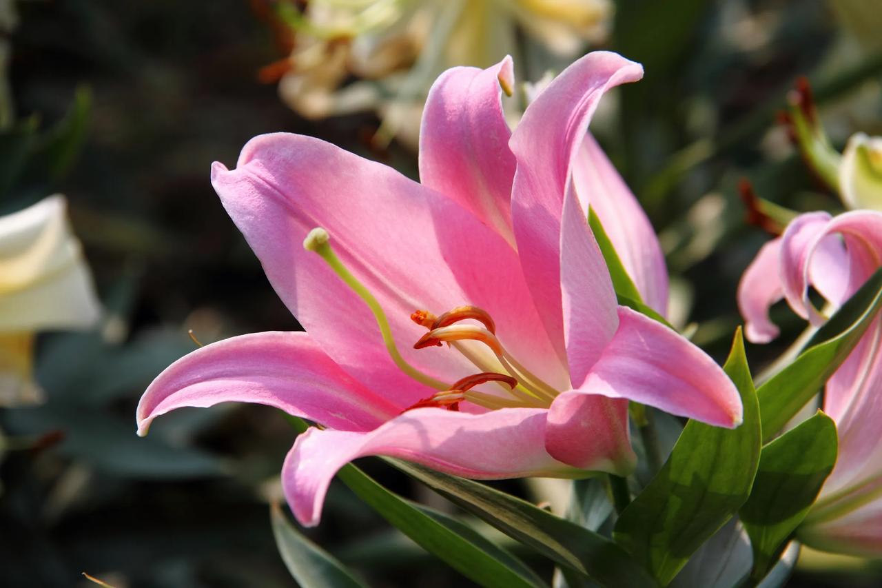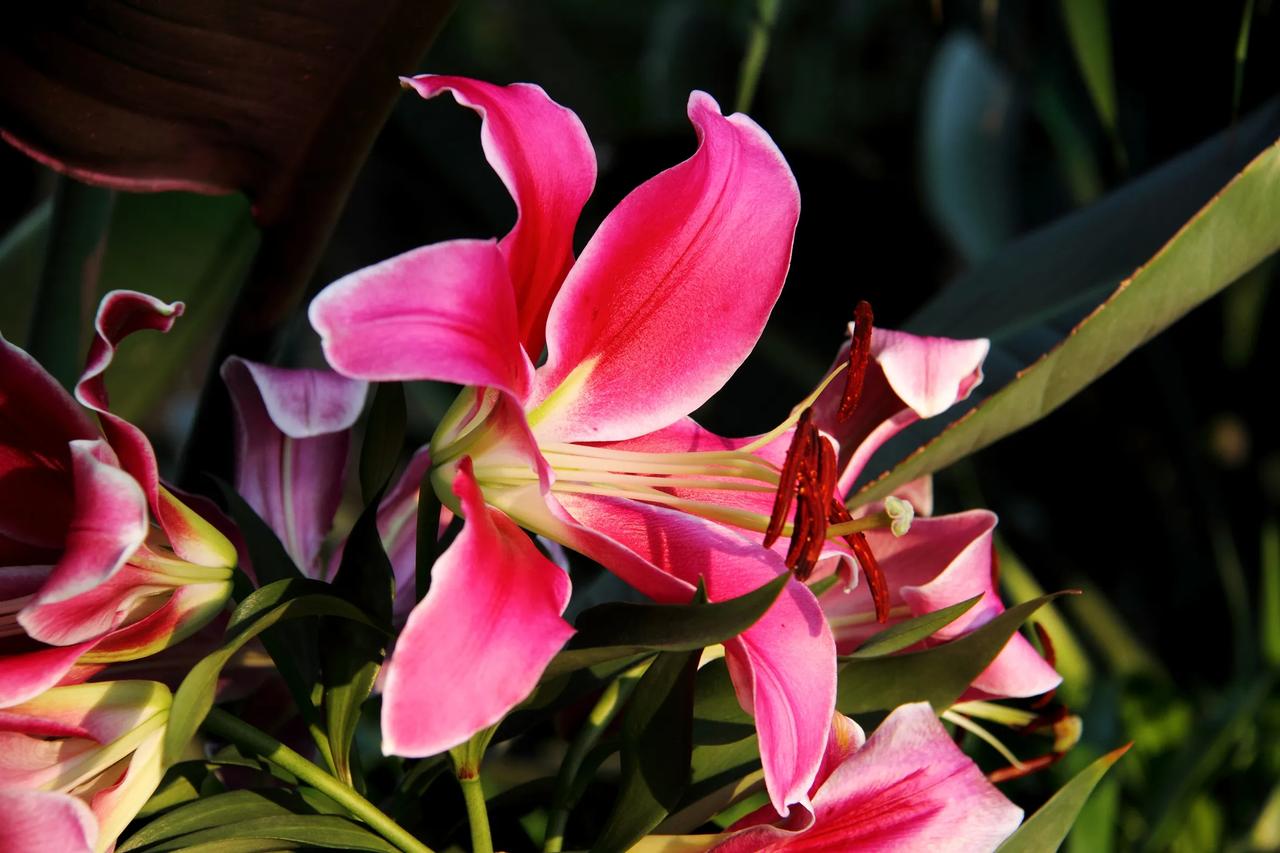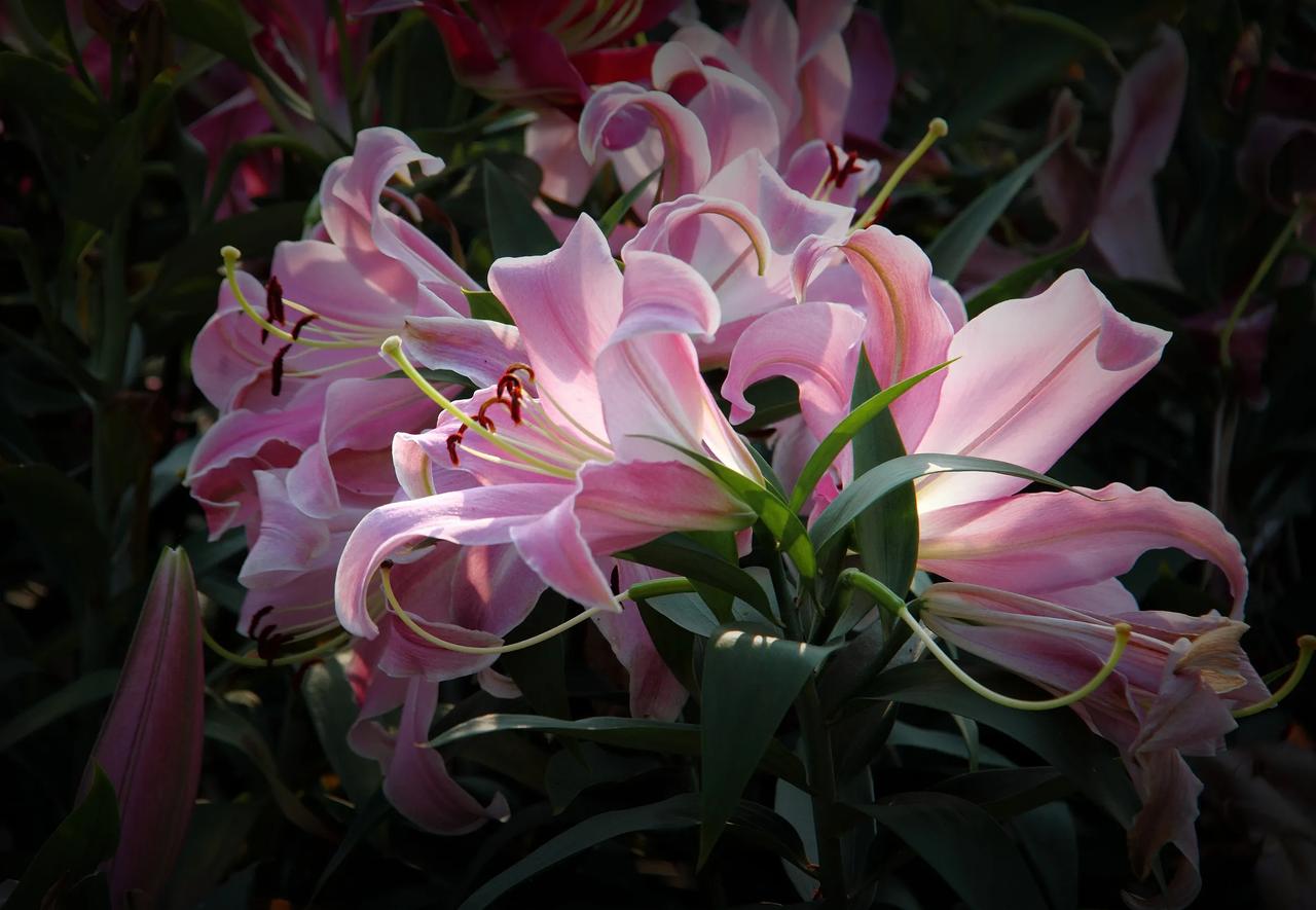 #秋日生活打卡季# 【漫花庄园百合花 粉红色】20241004 漫花庄园百合花,粉红色。其实有好几种,基调是粉红色。一种颜色较浅,粉白比较明显,花瓣较薄,光影下有点透,比较灵动。另外一种,红色较浓,花瓣厚重,感觉有点凝滞。花形都和黄白色百合花类似,花朵较大,花瓣外翻形成较大的喇叭口,有点夸张,有点杂乱。花蕊不够长,没伸到花瓣外,花药颜色也不漂亮。花期较早,香味浓郁。 #分享拍摄的花朵# #花草摄影爱好者# #秋日生活打卡季#
