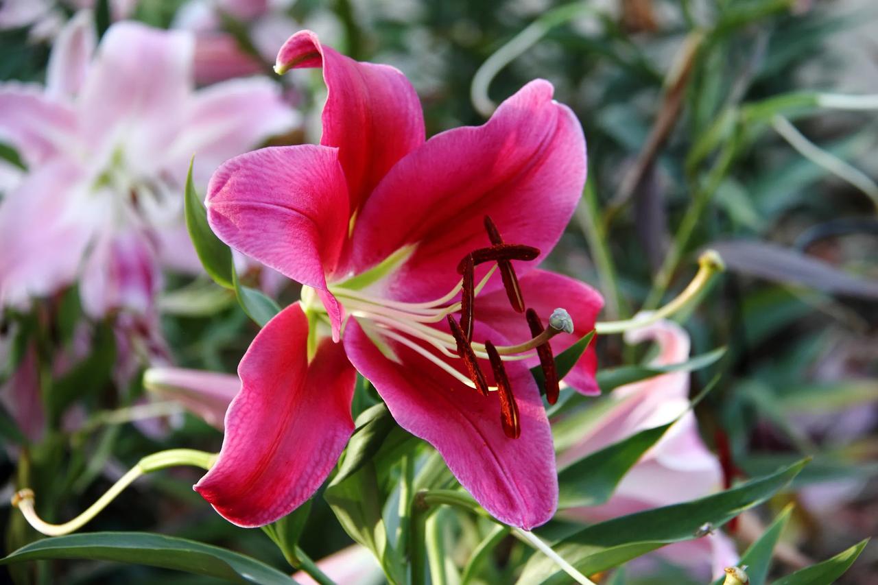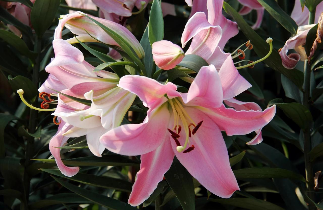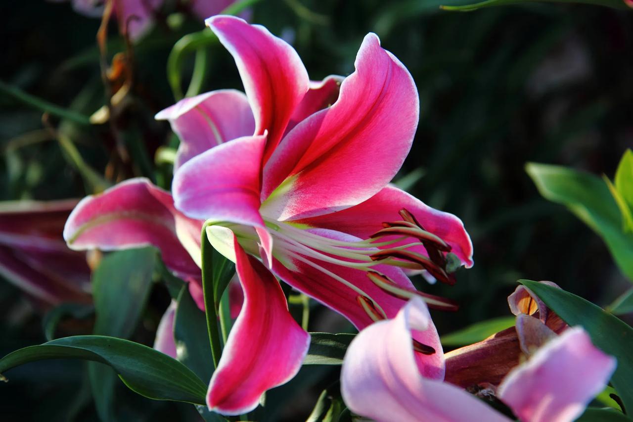 #秋日生活打卡季# 【漫花庄园百合花 粉红色】20241004 漫花庄园百合花,粉红色。其实有好几种,基调是粉红色。一种颜色较浅,粉白比较明显,花瓣较薄,光影下有点透,比较灵动。另外一种,红色较浓,花瓣厚重,感觉有点凝滞。花形都和黄白色百合花类似,花朵较大,花瓣外翻形成较大的喇叭口,有点夸张,有点杂乱。花蕊不够长,没伸到花瓣外,花药颜色也不漂亮。花期较早,香味浓郁。 #分享拍摄的花朵# #花草摄影爱好者# #秋日生活打卡季#