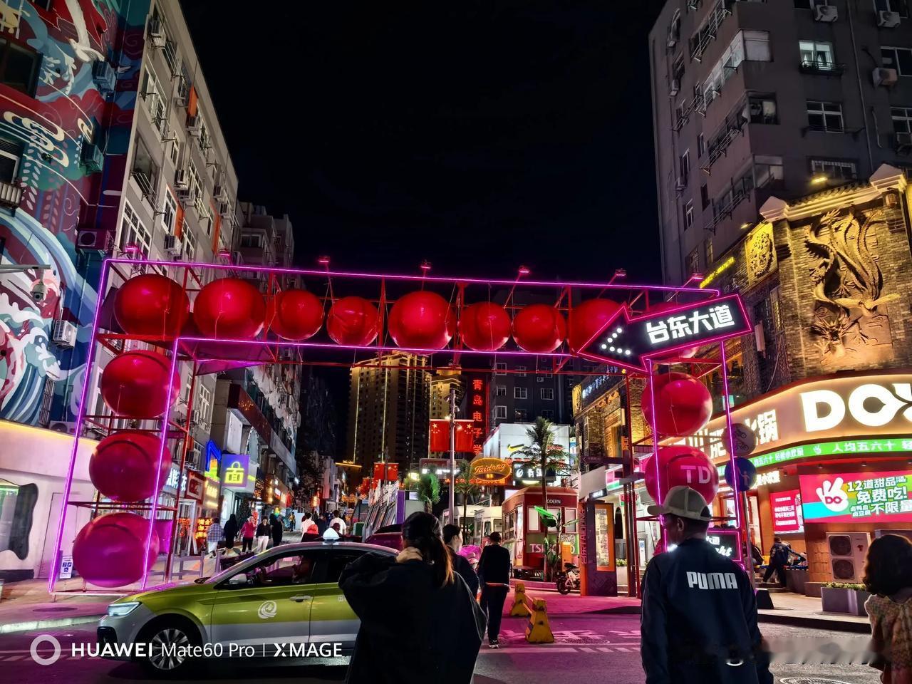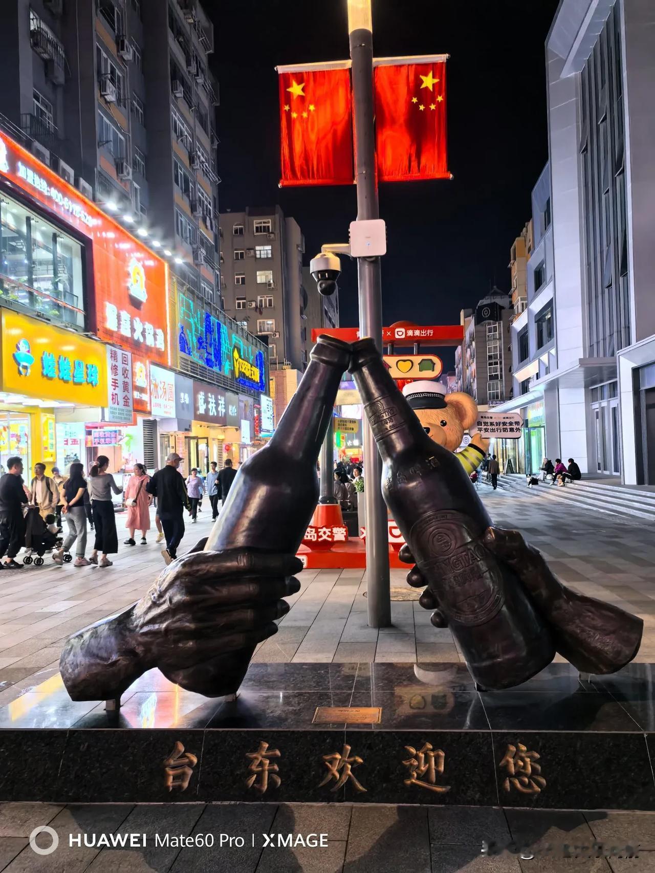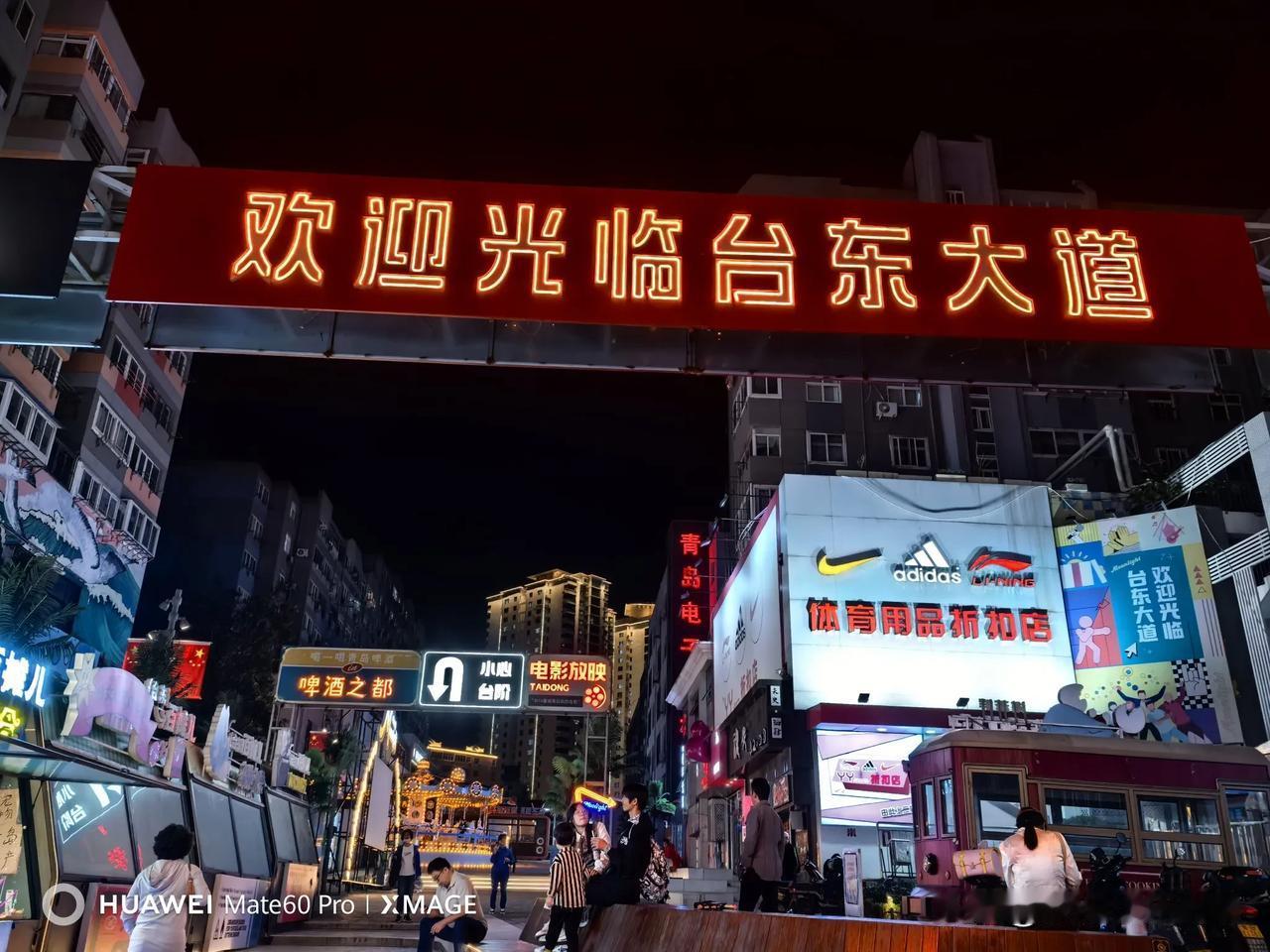 #十一假期怎么过#青岛台东步行街国庆节变化很大!从青岛电子学校(原青岛十九中)院墙外的大道上,竖起了一个醒目的彩虹灯横屏《欢迎光临台东大道》,难道台东步行街又有了一个新名字? 我沿着这条霓虹灯闪烁的台东大道一直往前走,台东步行街怎么延长了? 国庆夜晚的台东步行街充满了活力,独特的烟火气息充斥着这个老街夜市,夜市上人头攒动,唱歌的,跳舞的,卖货的,还有专供儿童玩乐的乐园,台东步行街成了欢乐的海洋。