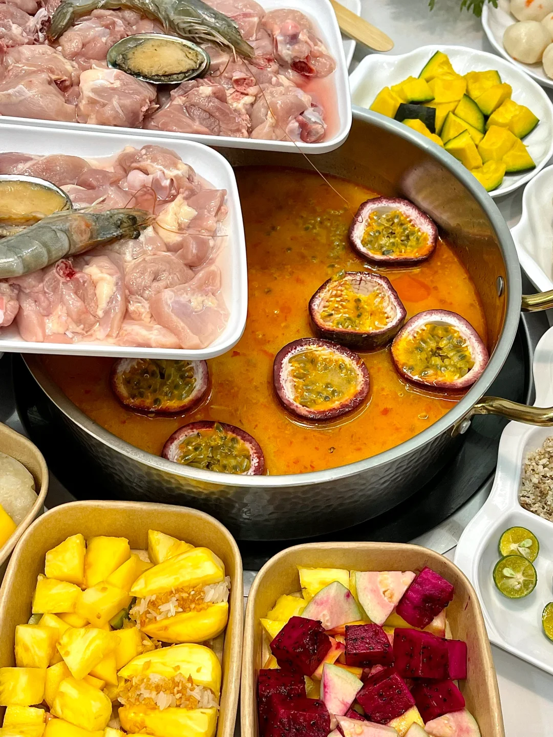 百香果糟粕醋火锅很好吃😋 还有糯米饭和酸嘢[色色R][赞R] 都太适合夏天了!