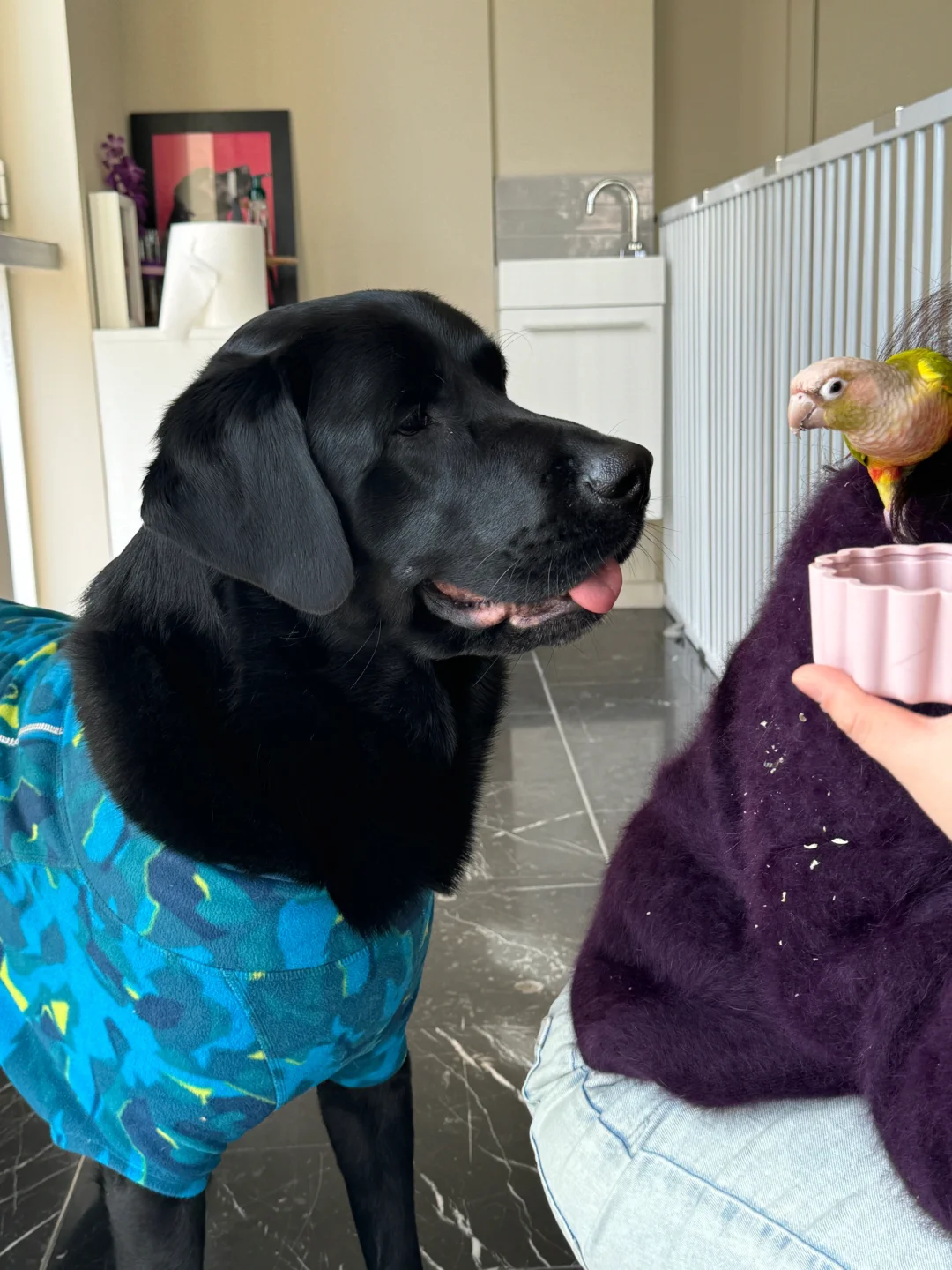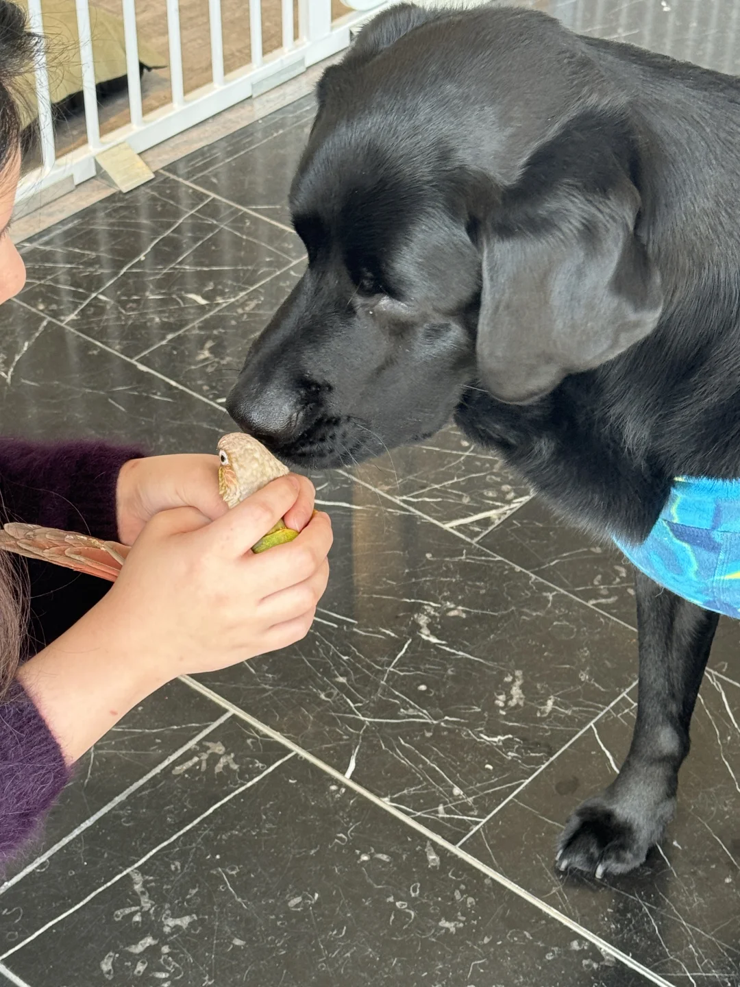 我的小狗有了第一个小太阳鹦鹉朋友