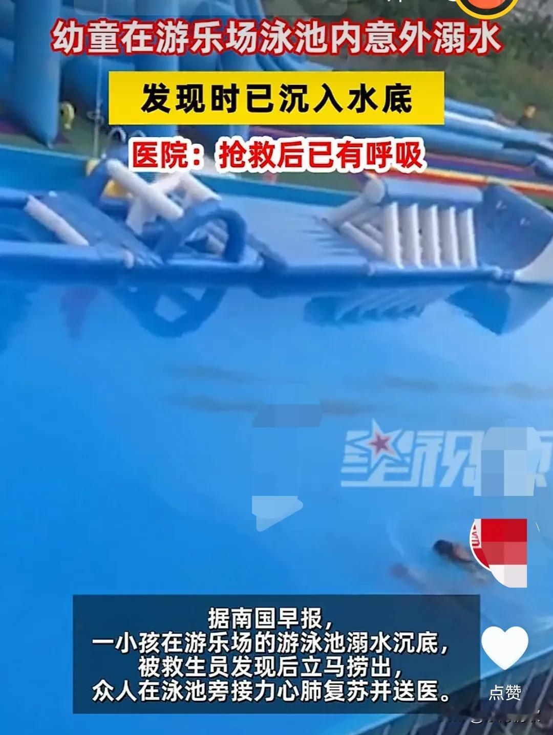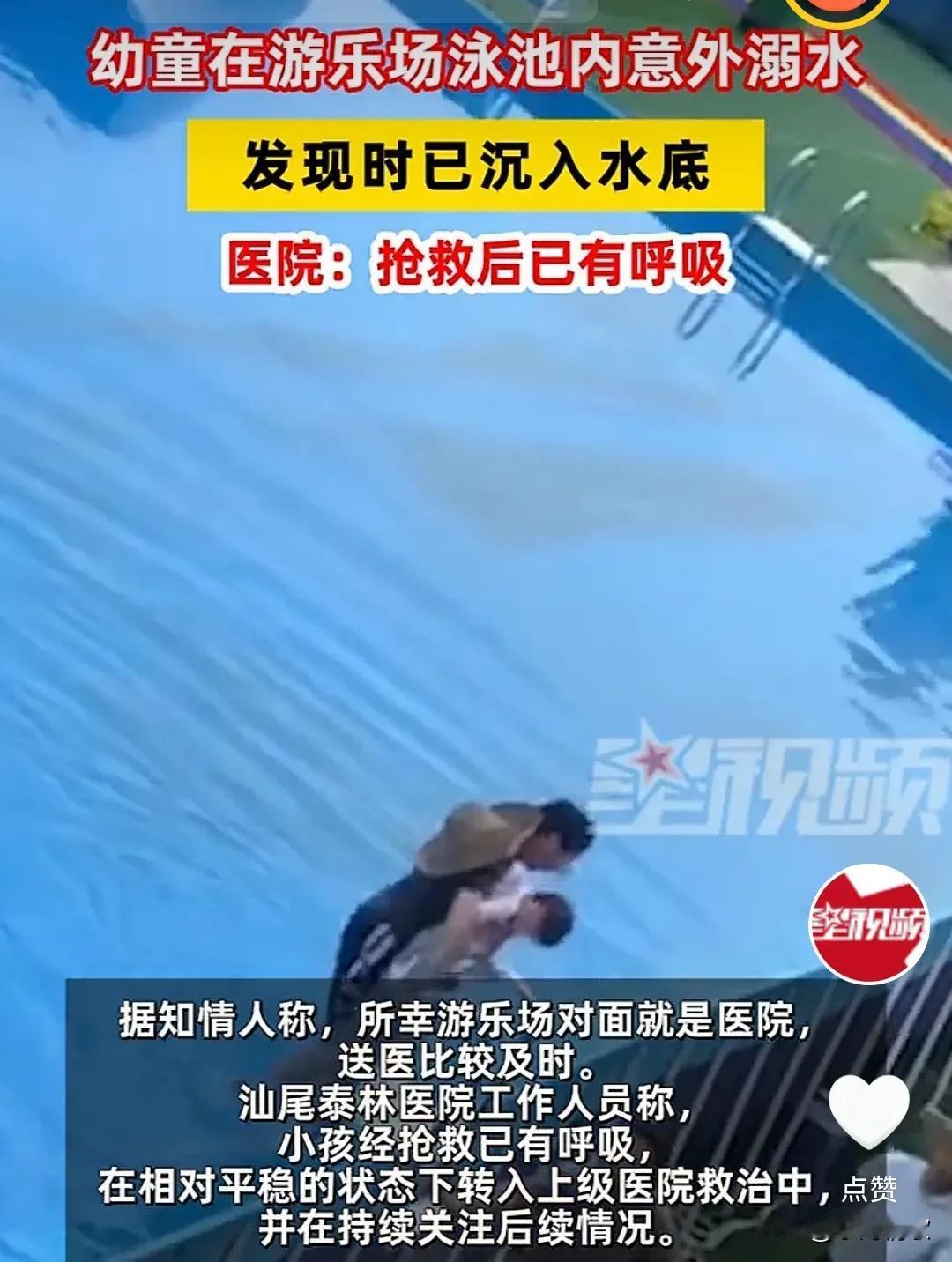 实在是太危险太惊险了,10月4日广东汕尾。幼童在游乐场游泳池内溺水,不知道家长干什么去了,怎么这么放心? 而且救生员也不是第一时间发现的,不过还好,最终还是发现了幼童,抢救后也没有生命危险。 要是再晚那么一点,那基本上就是失去生命了。 能活着也是不幸中的万幸了。 家长们长点心吧,怎么能这么大意呢。 要是没救过来,那真是后悔也没用了,安全意识大过天。