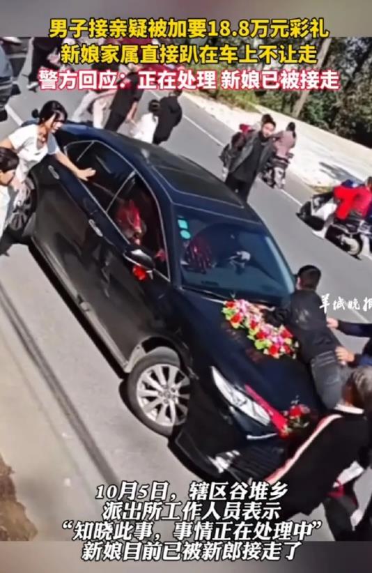 河南信阳,男子为表诚意,东拼西凑给了女方18.8万彩礼,谁知,婚礼当他他高高兴兴去接亲,却被大舅哥拦在门外,要他当场再给18.8万彩礼。女子知道,他哥准备拿她的彩礼钱去还债,所以她以死相逼,最终顺利上了婚车。谁知,哥哥依然不死心,躺在车底继续威胁,男子忍无可忍,直接报警,结果大快人心。