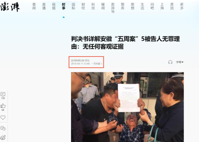 信息来源:澎湃新闻 2018-1-4 《安徽涡阳“五周杀人”疑案最后一被告刑满释放,被关近21年》
