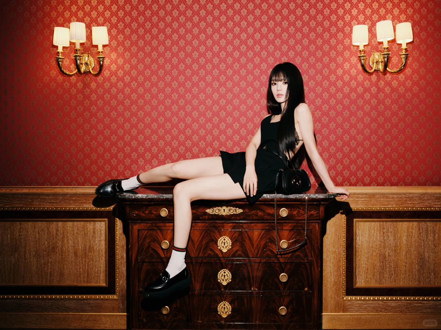 视觉中国拍的Lisa穿繁花紧身长裙照