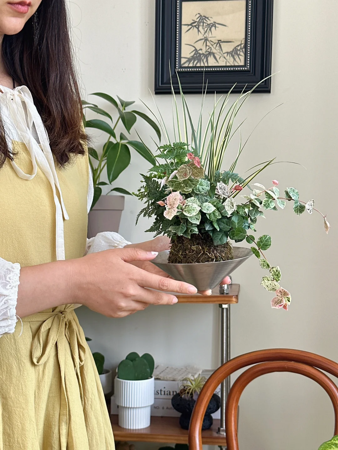 养护也很简单,保持苔藓湿润哦。苔藓表面干了,就需要给他泡一下水,等他不吸水,一定要把多余的水倒掉哦~放在通风明亮散射光的地方~养护是不是很简单~