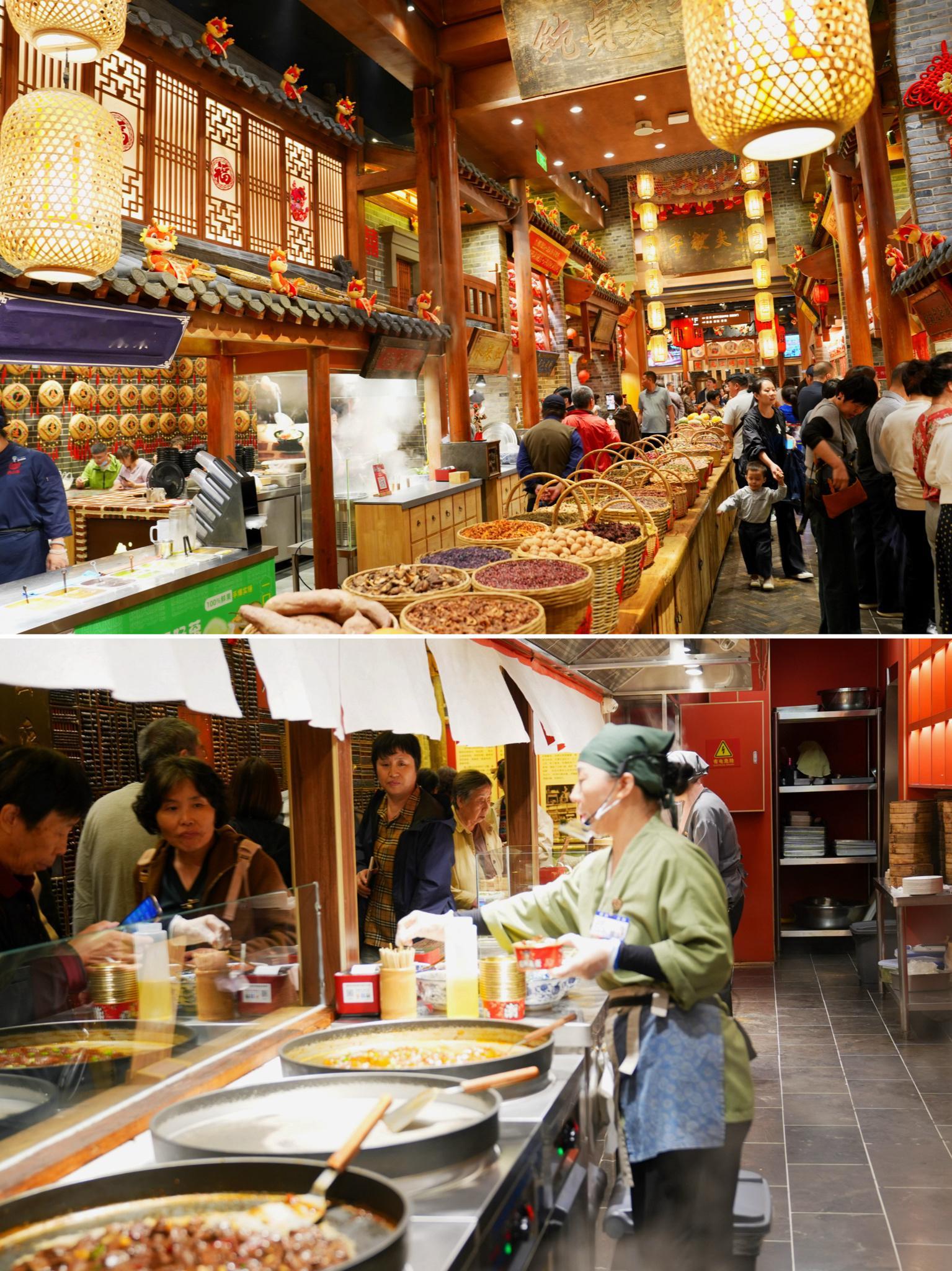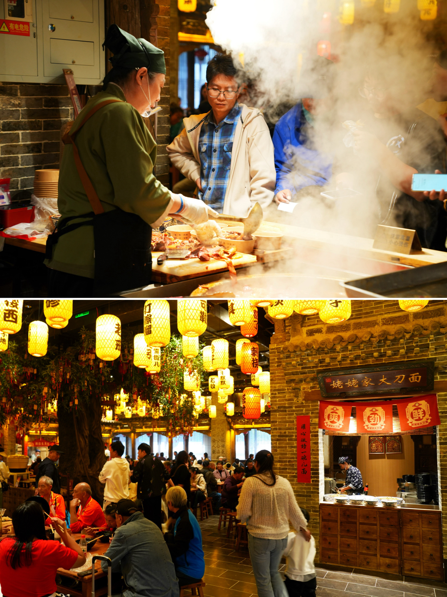 一踏入唐山宴,仿佛穿越到了老唐山的繁华市井。古色古香的建筑、热闹非凡的市场氛围,我们可以一边参观一边品尝,每一步都充满了惊喜。