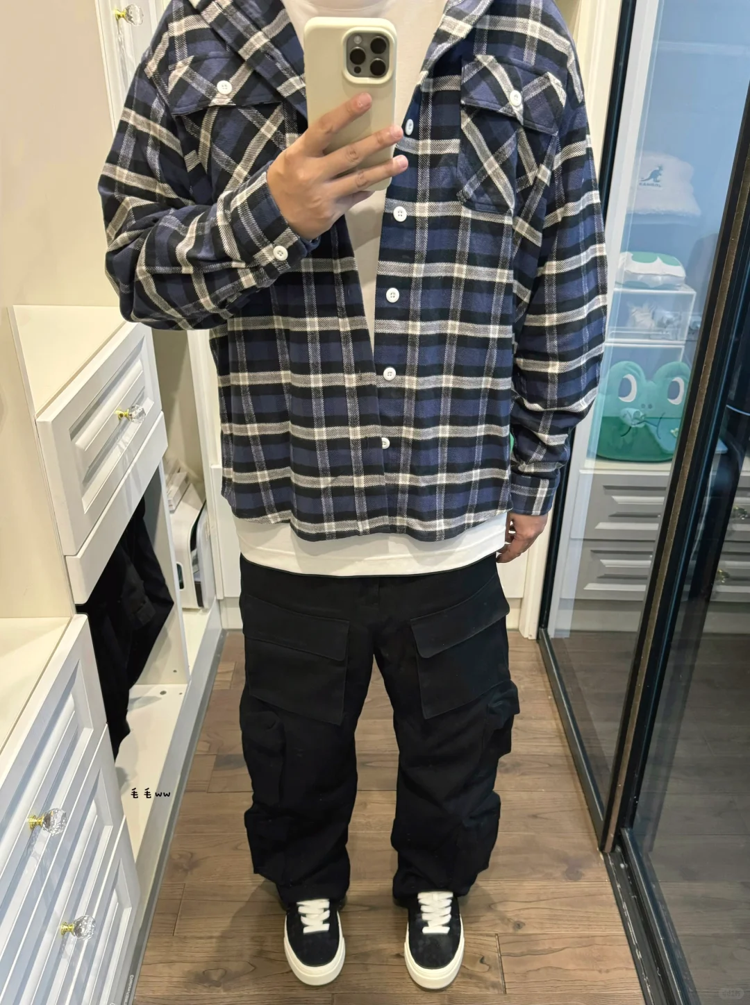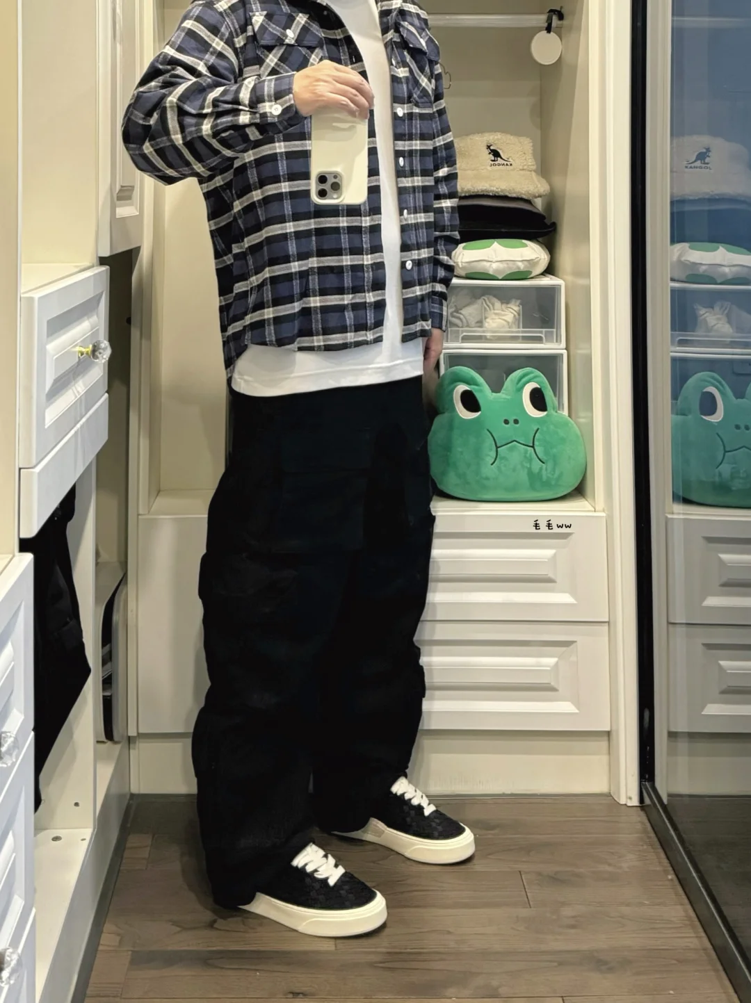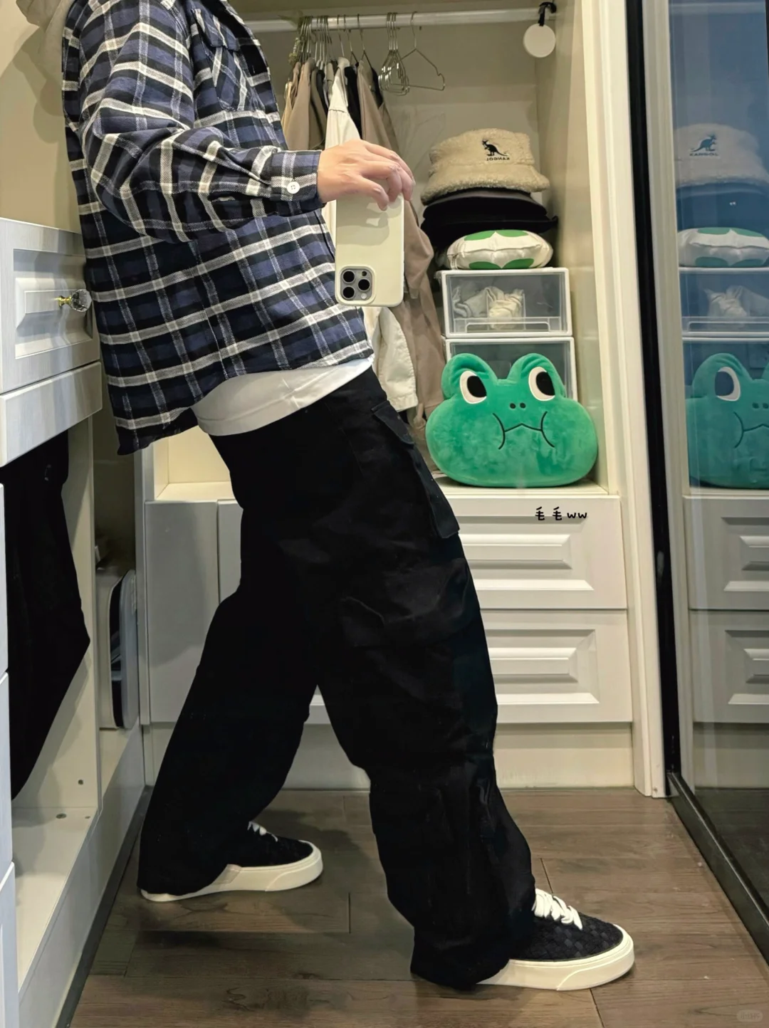 -宽松的格纹穿搭,真的容易代入少年感;特别推荐蓝色跟红色,蓝格略沉稳、红格偏热情 . -下装选择很多,各有各的特色;卫裤显得轻松,工装会更街头,窄裤更加干练,阔腿增添颓感 . —————— . ✏️本人178cm75kg 球鞋尺码265mm(正常EU42) . 💭以上均为我个人观点,不喜勿喷,欢迎讨论