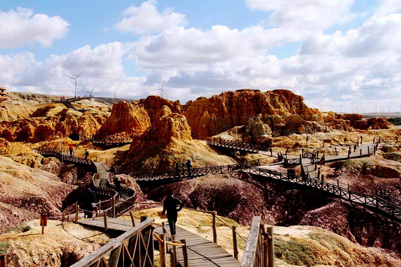 #秋日生活打卡季# 【布尔津 五彩滩】20241009 前几天,看到头条有个推荐话题,用一张图片证明自己曾经到过新疆。曾经在2017年9月自驾新疆,北疆入南疆出,历时40多天,去了好多地方,拍了不少照片。翻翻电脑,照片都还在。今天就晒晒布尔津五彩滩的风景。转眼七年,相信如今,五彩滩的风景更美! 五彩滩距布尔津市区大约25公里,是额尓齐斯河边的一个4A景区。景区不大,十分紧凑,处处出彩,非常漂亮。不仅有雅丹景观的奇特,还有丹霞地貌的多彩,色彩斑斓。额尔齐斯河缓缓流淌,清澈的河水湛蓝碧绿。河滩的胡杨树黄绿交织,绚丽璀璨。洁白的云朵在蓝天漂浮,风车的桨叶在风中转动。沿着栈道,花2个小时就可将美景尽收眼底。最美是傍晚,夕阳西下,霞光映照,五彩滩简直要美哭了!虽没有时间去等待落日晚霞,美景已经让我心醉! 布尔津五彩滩。蓝天白云风车沙滩,彩色雅丹绚丽缤纷,恍若童话世界,一生不可不去! #分享拍摄的花朵# #花草摄影爱好者# #新疆五彩景区# #布尔津太美了# #新疆秋色最美时# #秋日生活打卡季#