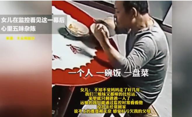 “令人心酸!”福建,一男子独自坐在空荡荡的客厅吃饭,妻子离世,三个女儿远嫁,女儿看见监控里的画面很不是滋味,三姐妹离家都很远,没有办法经常回家,心里亏欠不已,网友:有时间常回家看看! 信息来源:济宁晚报《妻子去世,女儿远嫁,在监控看见这一幕后,女儿心里五味杂陈》2024年9月 26日 9月25日,一位父亲孤苦伶仃的在客厅吃饭,没有人陪他说话,看见这一幕的女儿,不禁流下了眼泪。 父亲的生活,通过一个小小的监控摄像头,被远在他乡的女儿们尽收眼底,这个原本用于安全防护的设备,如今成为了维系亲情的独特方式。 每天女儿们都会通过这个小小的镜头,默默关注着父亲的一举一动,仿佛这样就能缩短彼此之间的距离,然而,这种通过冰冷镜头传递的关爱,却也带来了意想不到的心理负担。 当女儿们看到父亲孤独地坐在沙发上,一坐就是大半天,或是在空荡的餐桌前独自用餐时,内心总会涌起一阵难以言喻的酸楚。 原来他的妻子早就离他远去,这名父亲膝下有三个女儿,可三姐妹全部远嫁了,对于他来说,女儿们的幸福才是最重要的,毕竟陪她们走到最后的是自己的伴侣。 这种通过科技窥视亲人生活的方式,女儿们虽然满足了她们对父亲日常的关心,却也无情地放大了她们内心的愧疚感。 偌大的房子里,只有他一个人的脚步声回荡,偶尔会坐在客厅的沙发上,目光呆滞地望着电视机,却并不真正在看节目。 有的时候,他也会翻看女儿们发来的消息和照片,脸上露出欣慰的笑容,但很快又会陷入沉思,尽管餐桌上只有他一个人进餐,但他也会幻想和妻子和女儿们吃饭的画面。 对于远嫁的女儿们来说,这种通过科技设备观察父亲生活的方式,带来的是复杂而矛盾的心理体验,她们庆幸能够通过这种方式时刻关注父亲的状况,确保他的安全。 但看到父亲孤独的身影,都会让她们陷入深深的自责和无力感,父母含辛茹苦把他们拉扯长大,最后没有一个人陪伴在他的身边。 随着社会的快速发展,年轻人为了追求更好的发展机会,不得不离开家乡,在大城市打拼,还有人为了顾住自己的小家,只好暂时将父母搁置在一边。 只因她们是父母的孩子,会无限的包容,尤其是长大后,更不会责怪女儿的选择,曾经热闹的家庭,如今只剩下父亲一人守候,女儿们虽然心系家庭,却因为工作和生活的压力,无法经常回家。 技终究无法完全替代面对面的交流和陪伴,在这个瞬息万变的世界里,家庭的意义从未改变,亲情永远是我们生命中最珍贵的财富。 要是有时间的话,还是要常常回家看望下自己的父母,千万不要等到发生重大变故后,才后知后觉,到时候,即使想回家找父亲诉苦,也无法回到这样的日子。 随着年纪渐长,父母更在意的是女儿能否长时间陪伴在身边,而不是能挣多少钱,所以不要辜负父母对孩子们的想念,亲情不能等待。 对于这件事情,大家有什么看法?