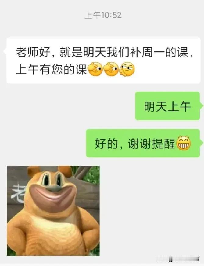 太吓人了,差点酿成教学事故 今天学校那边没课我在家混,上午去银行办了个业务。在银行椅子上等待的时候,看手机上发了一条微信,是我班里的学习委员给我发来的,她提醒我,明天上午我们有课,让我别忘记。 天呐,如果不是她提醒,我把这个事早就忘得干干净净了。 我们学校国庆放假通知是九月中旬时候下发的,当时也没太往心里去,反正就是随大流,大家都休息,我也休息。 昨天周四是假期后第一次上课,上完课我就想,又可以休息三天了,真不错。我的课是每周一周四两天。 我真心忘记了明天是继续上班的日子。按照学校通知,明天我们周六,应该补周一的课。 如果学生不提醒我,明天我不去学校上课,那可是个大教学事故。我家离学校班车一个小时的时间,迟到或者不去上课,这种事情都够我喝一壶。 都怪这奇葩的调休制度。为了凑一个国庆七天假期,把周末安排上课,让人过得乱糟糟,太烦人了。 幸亏我有贴心细心的学习委员,知道她的老师比较糊涂,及时提醒,避免了我的错误。 明天中午我打算请学习委员吃饭,支持的朋友举手啊。 #记录秋日生活点滴#