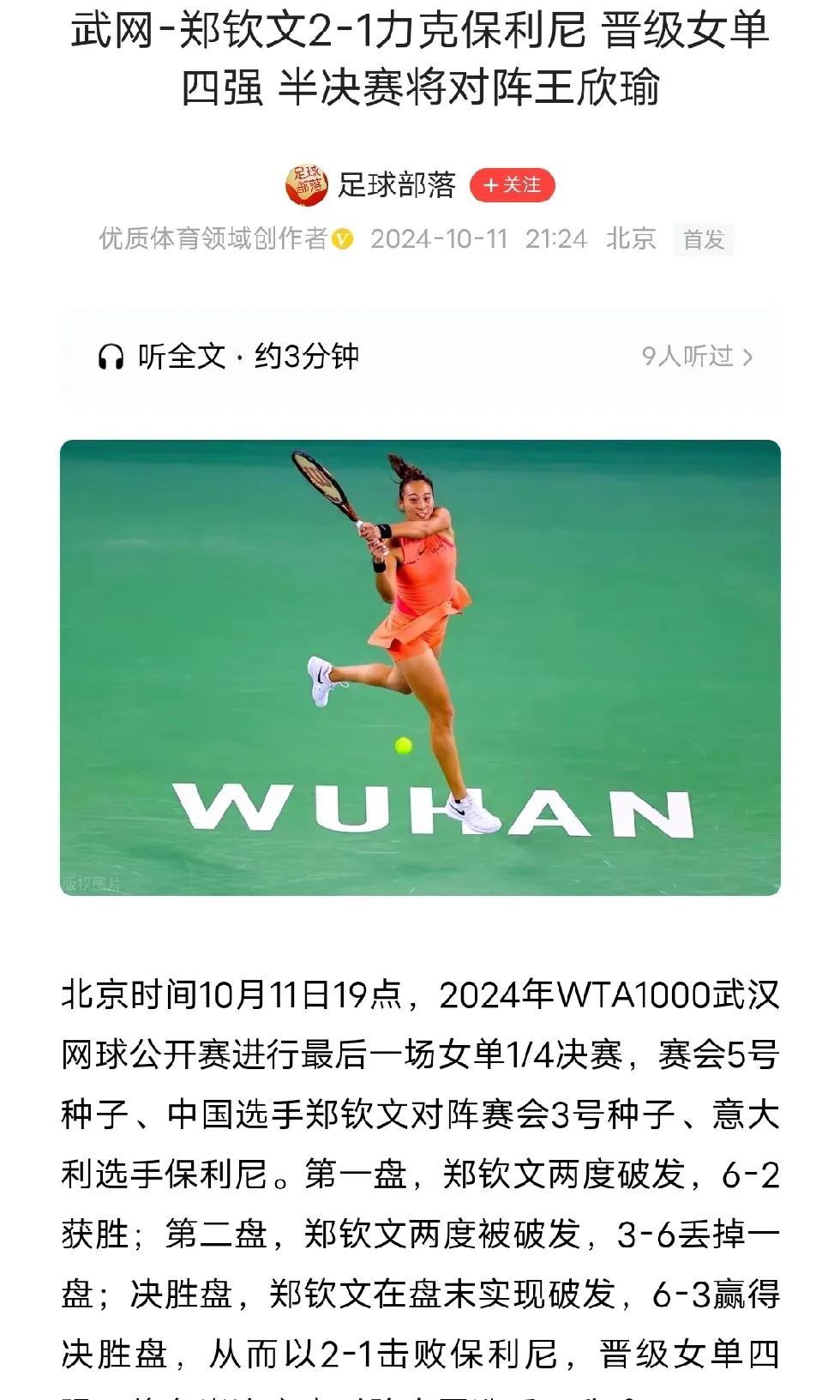 两朵金华,会师武汉网球公开赛,四强赛。运动的姿势很美,奋斗的精神很贵,加油。