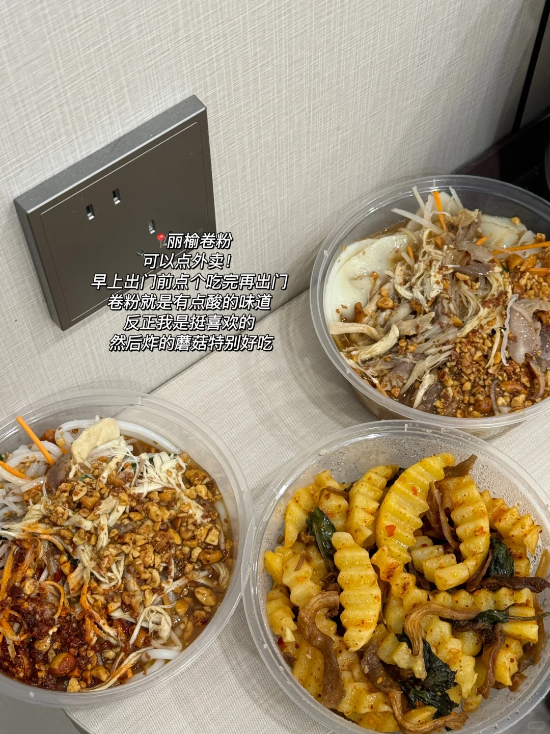 可以点外卖!早上出门前点个吃完再出门 卷粉就是有点酸的味道 反正我是挺喜欢的 然后炸的蘑菇特别好吃