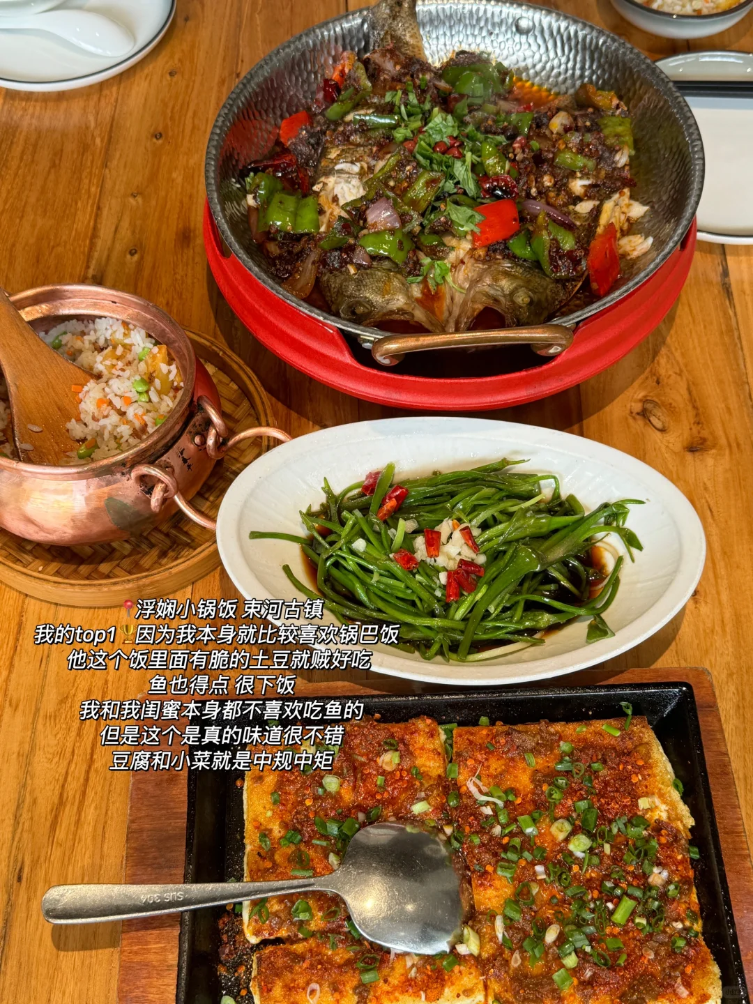 我的top1🏆因为我本身就比较喜欢锅巴饭 他这个饭里面有脆的土豆就贼好吃 鱼也得点 很下饭 我和我闺蜜本身都不喜欢吃鱼的 但是这个是真的味道很不错 豆腐和小菜就是中规中矩