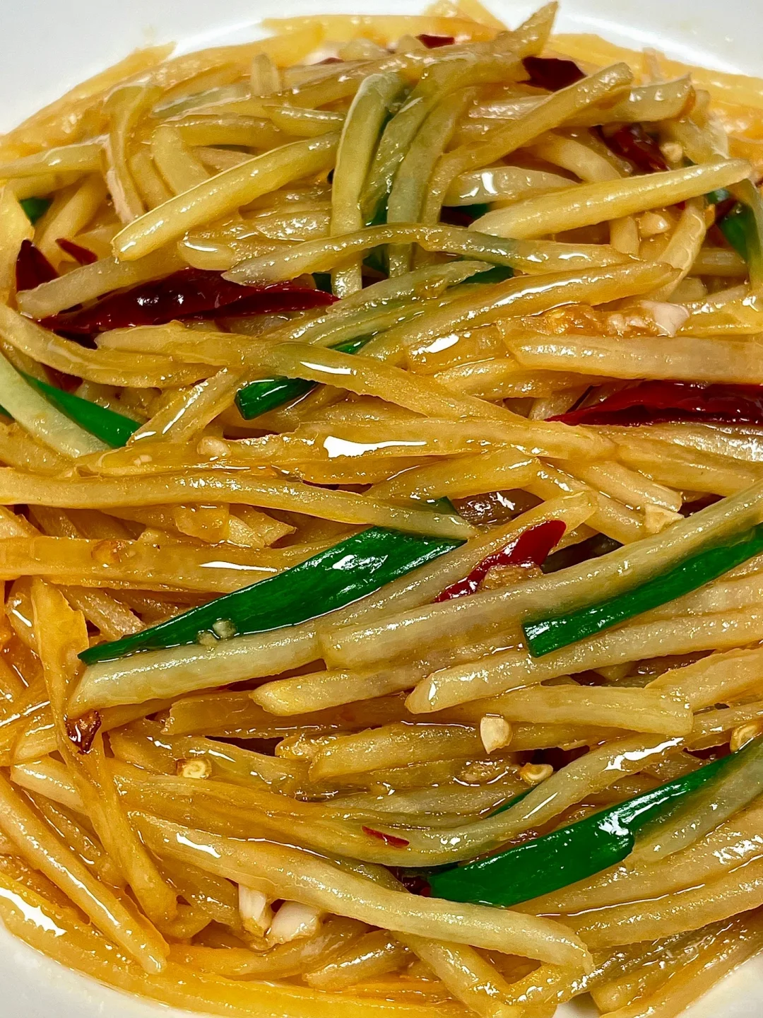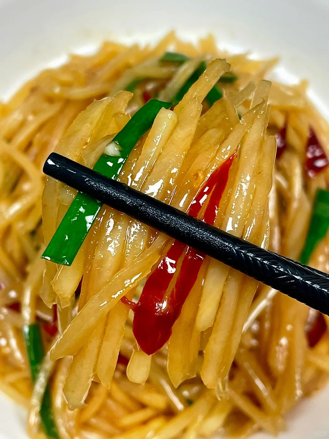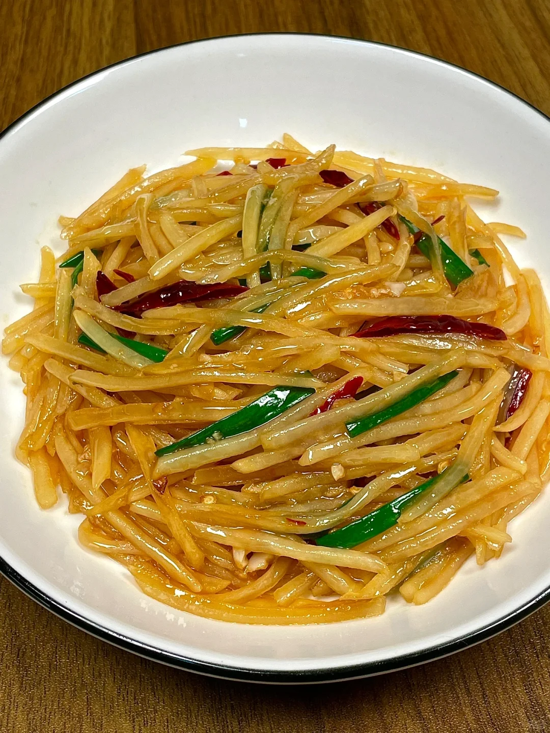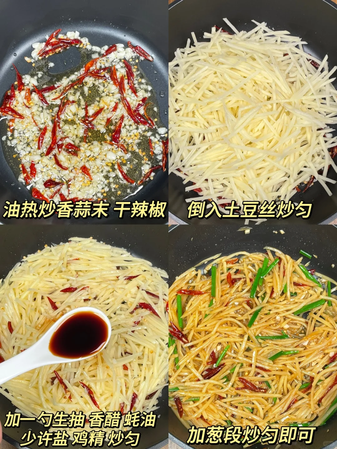 酸辣脆爽又下饭的土豆丝[色色R]真的好好吃啊!! 土豆丝爽脆可口,酸辣下饭,夹馒头配米饭都绝绝子[赞R][赞R]做法巨简单,姐妹们一定要试试!! [向右R]食材:土豆➕干辣椒➕葱蒜 [向右R]做法:如图所示!