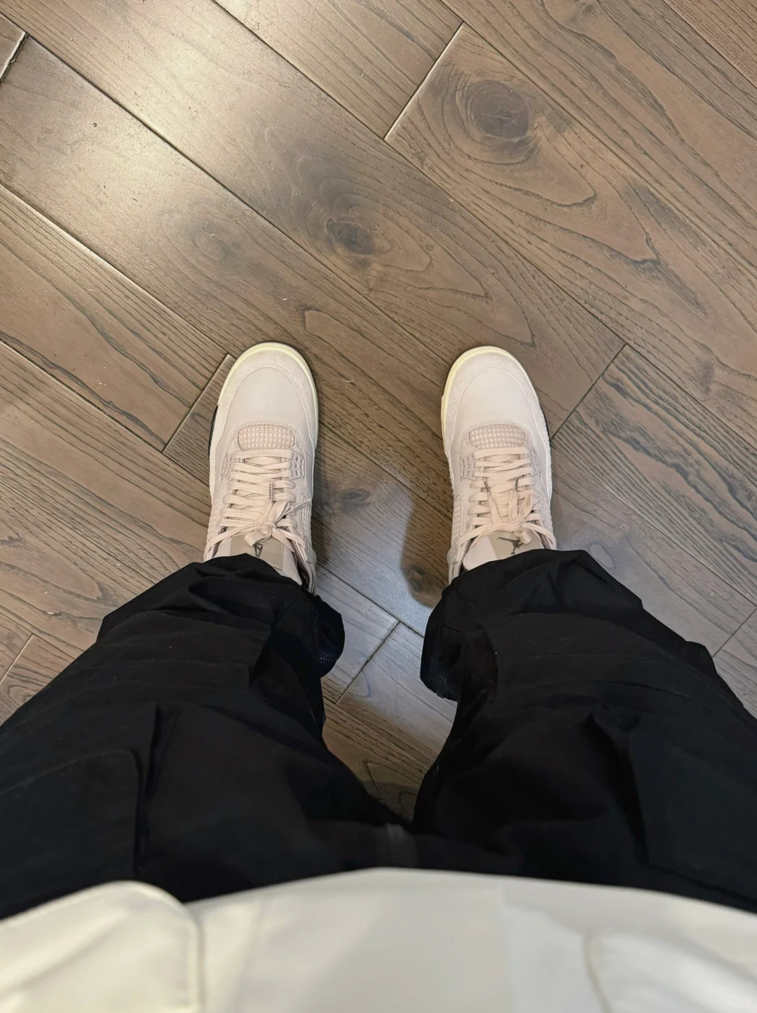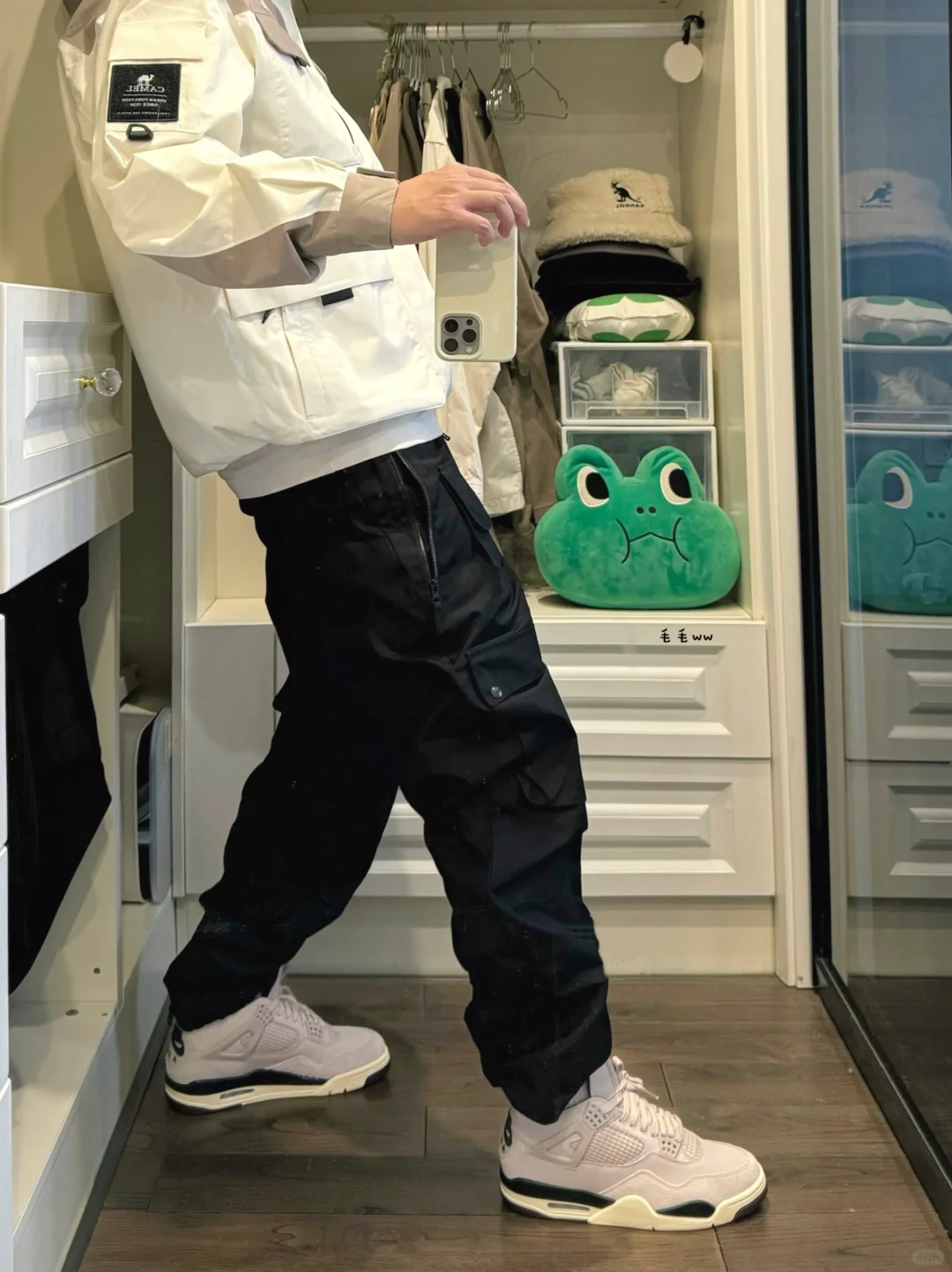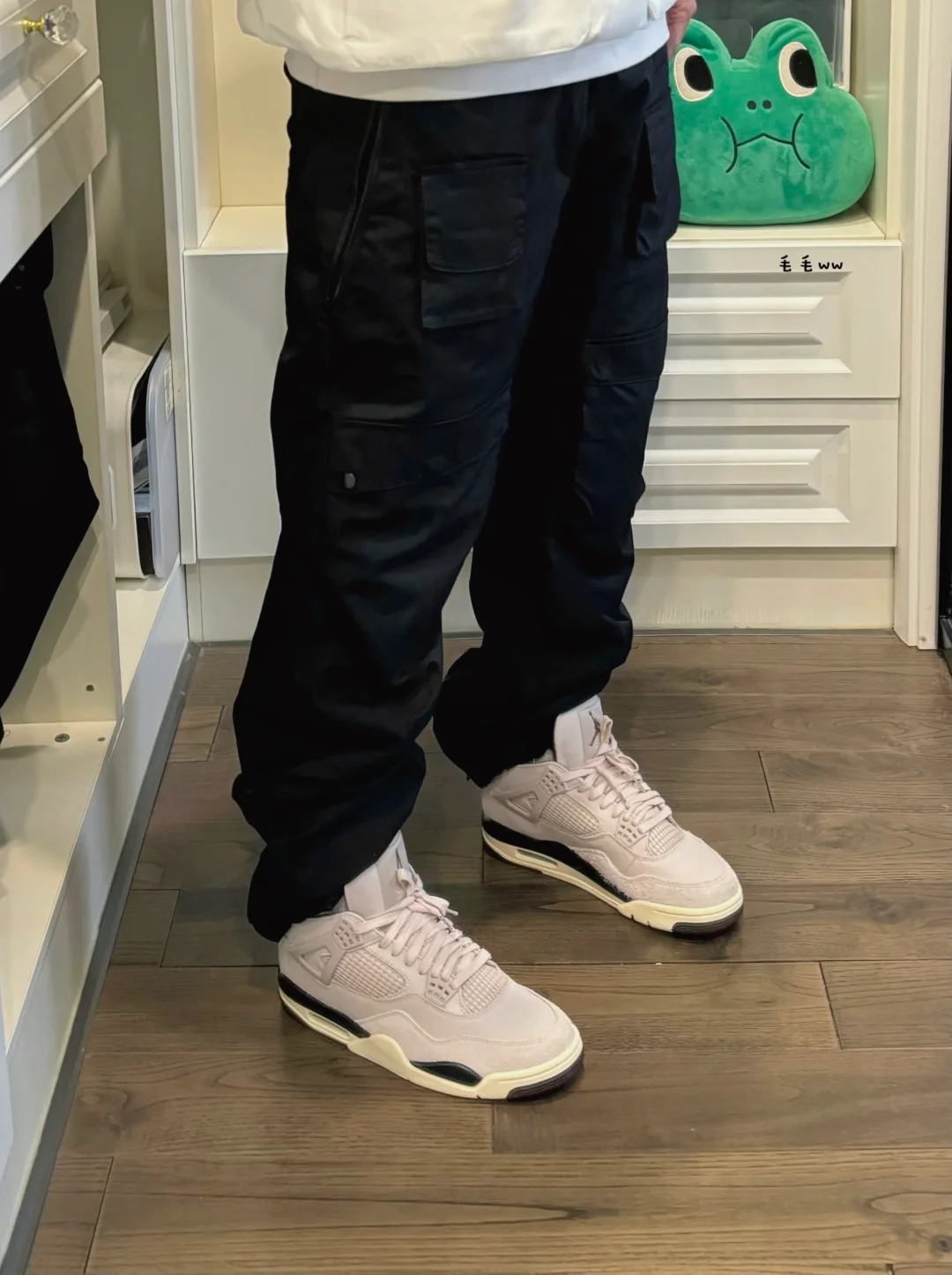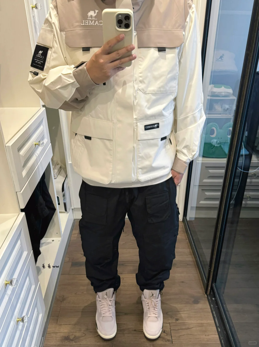 -搭配了几套AMM乔四,终于拿捏了配色,色卡确认在米粉;户外穿搭,冲锋衣工装裤组合 . -女生轻松搭配粉色,男生也能参考复古米色调,浅灰浅棕浅卡其都在范畴,整体不会突兀 . —————— . ✏️本人178cm75kg 球鞋尺码265mm(正常EU42) . 💭以上均为我个人观点,不喜勿喷,欢迎讨论