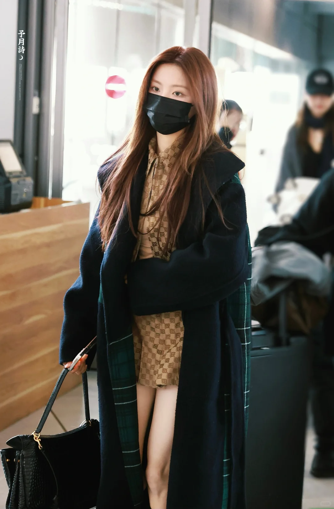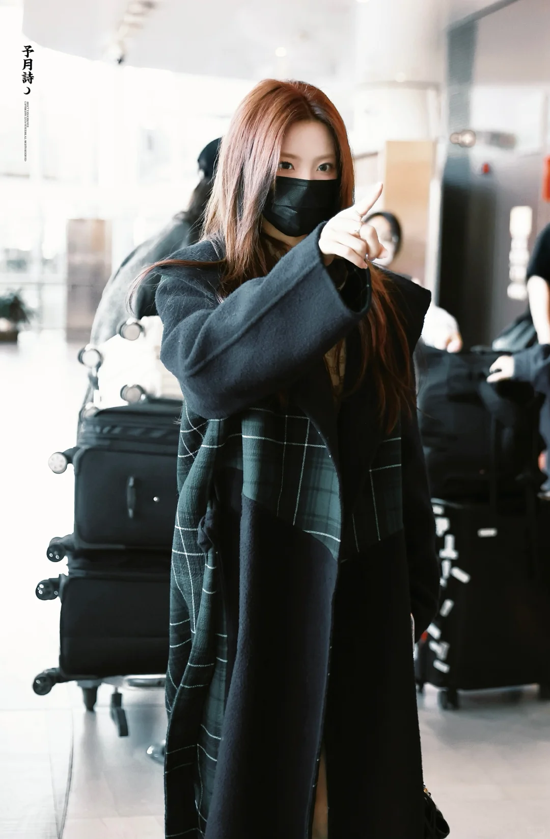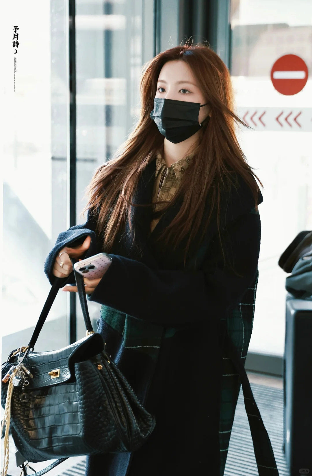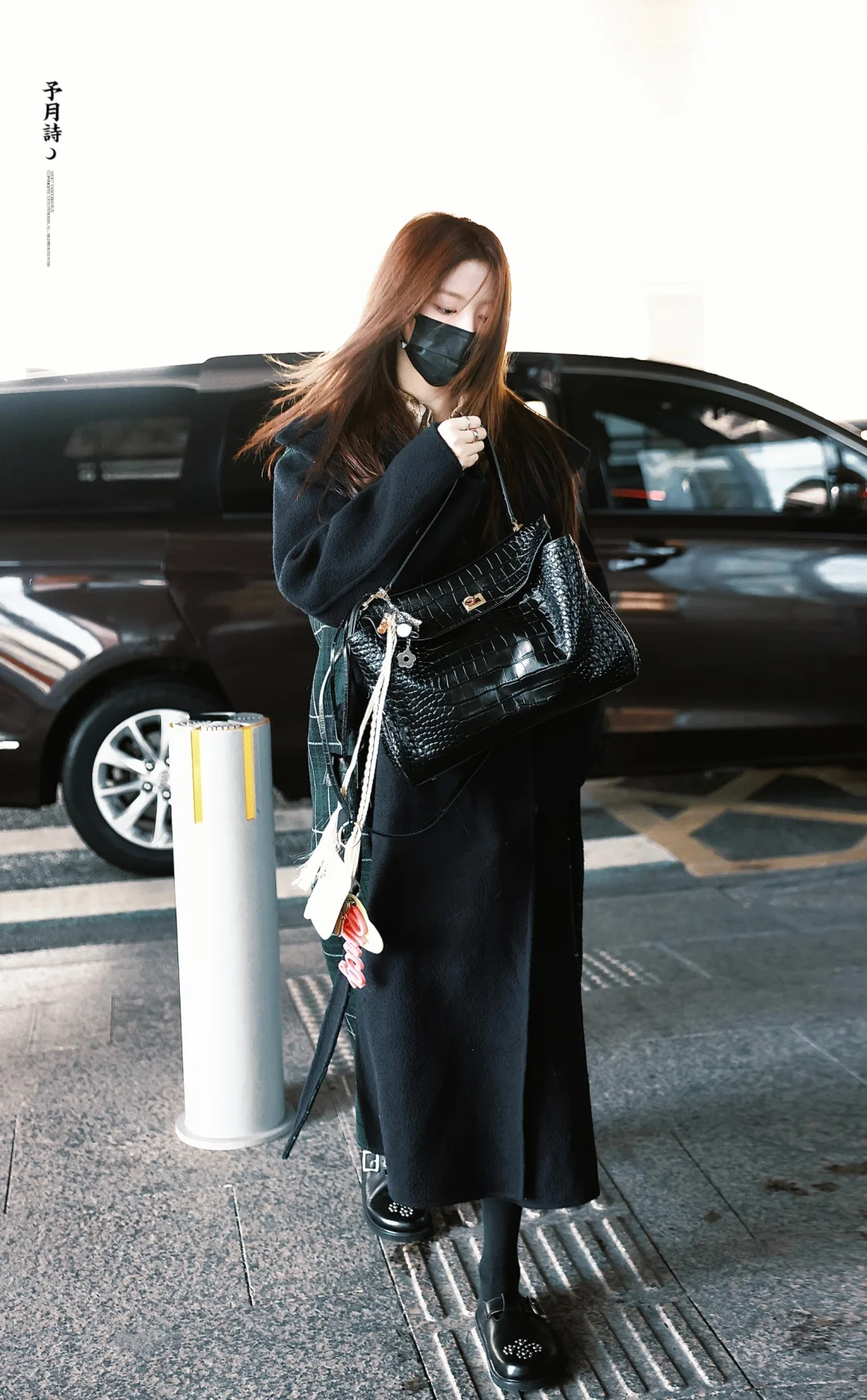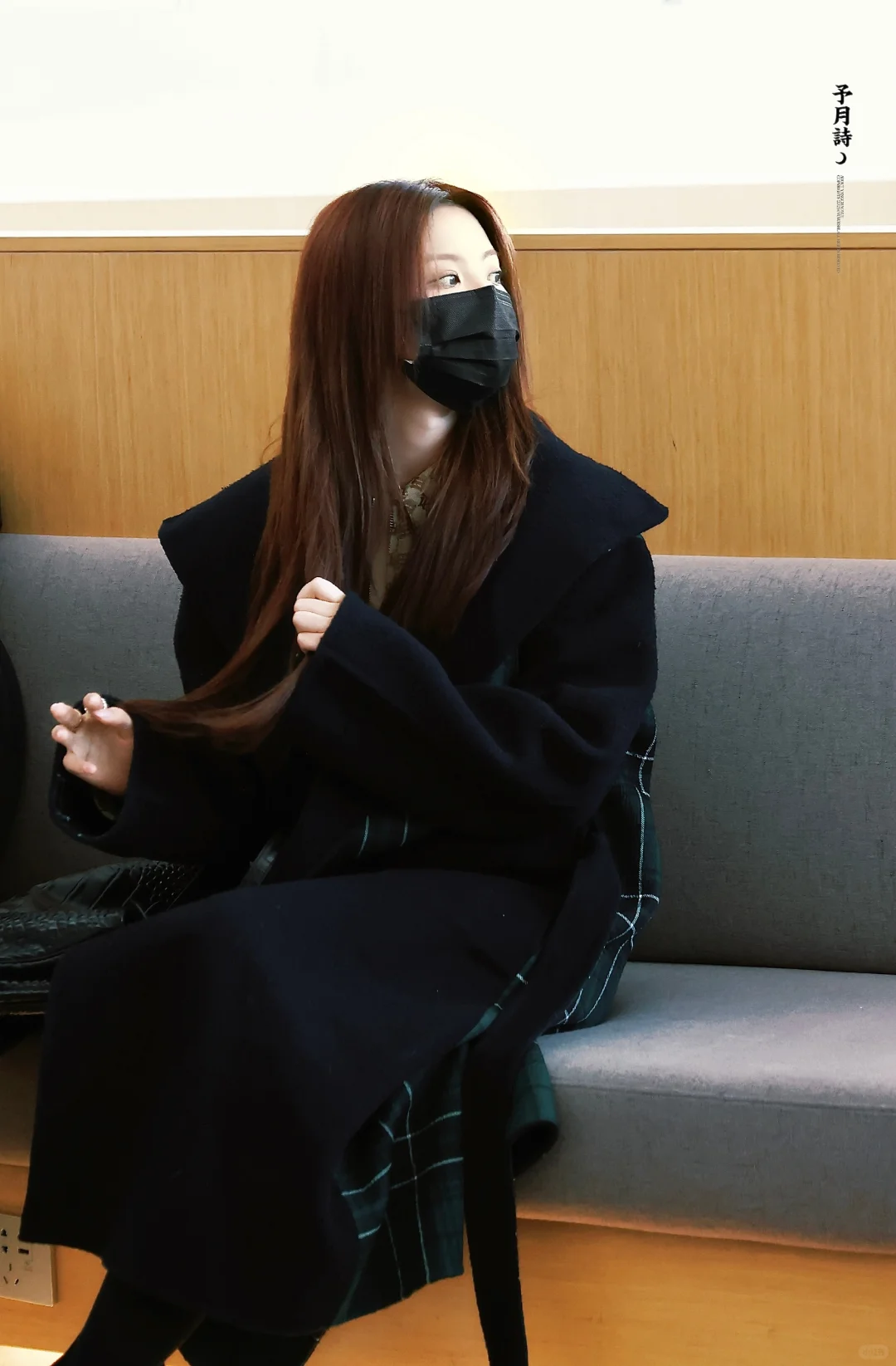 杨超越今日✈️穿搭,大衣叠穿酷飒出行!