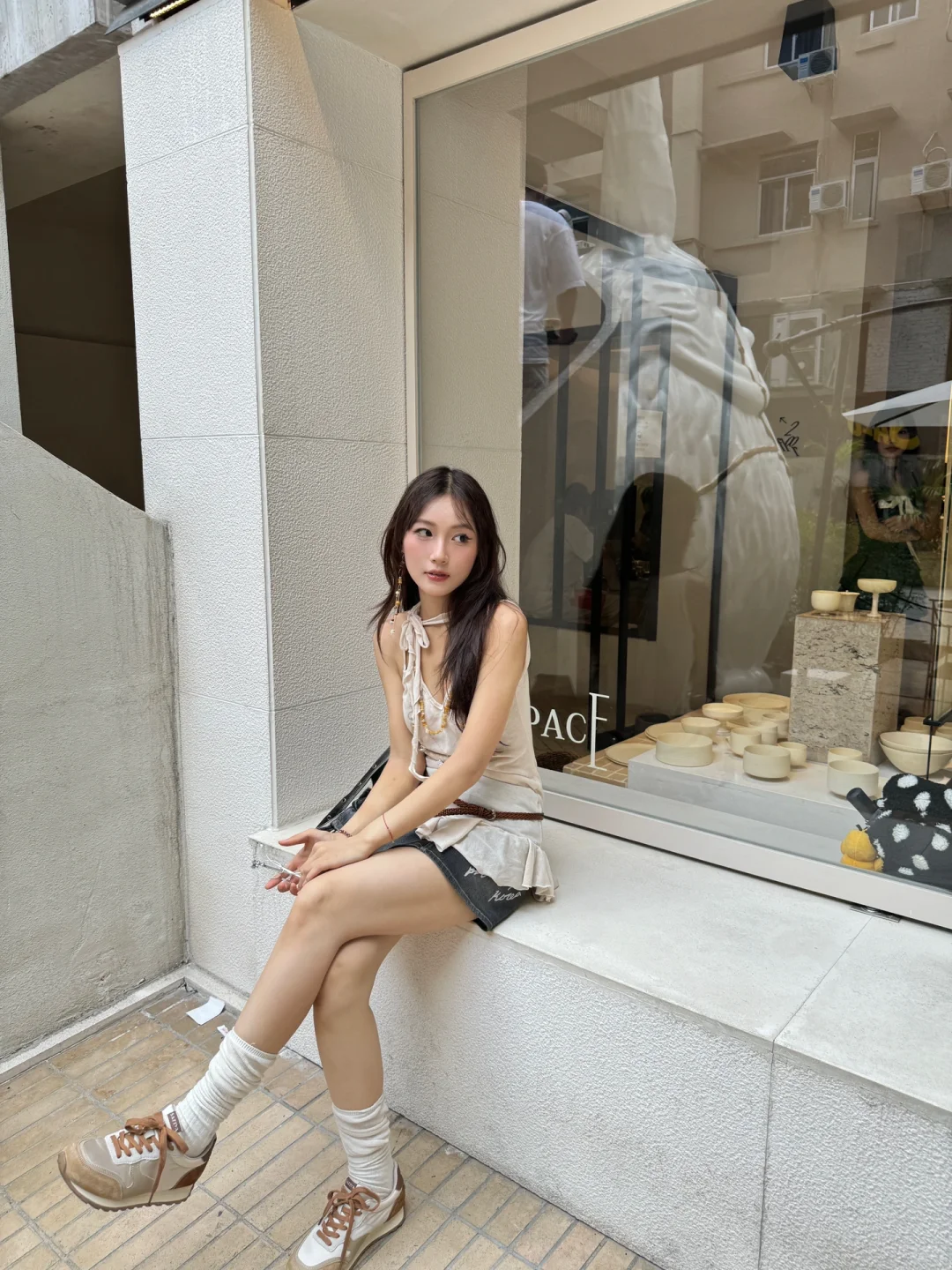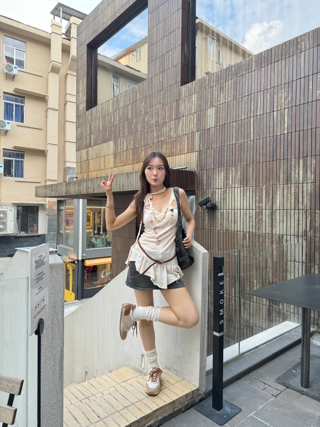 − 周末跟小姐妹出去玩啦👭 开心开心 吃了好吃的蛋糕🍰 − 今天用safiya的运动鞋👟 和带点小精致的风格混搭碰撞了一下 感觉sportychic真的狠狠眼前一亮了🤩