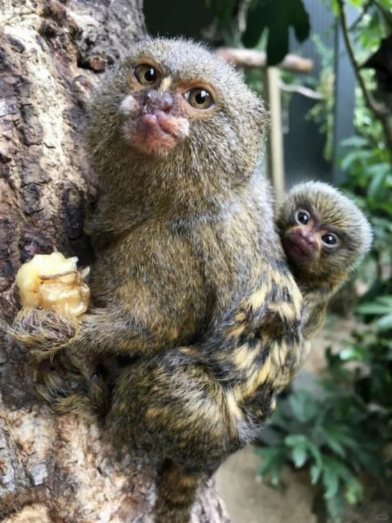 🍀侏儒狨猴生活在南美洲亚马逊流域的热带雨林中,性格活泼好动。它们的皮毛呈淡灰色或灰棕色,头部和面颊部分的毛发较为稠密,而脑后的头发形成一种短小的“鬃毛”。侏儒狨猴的眼睛大而圆,黄色的虹膜在阳光下会显得十分亮丽。