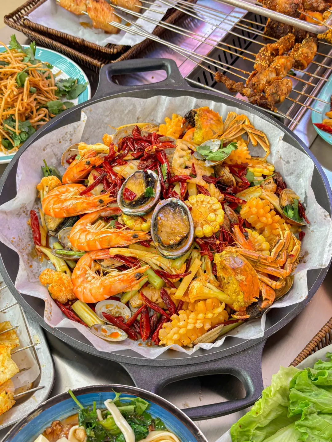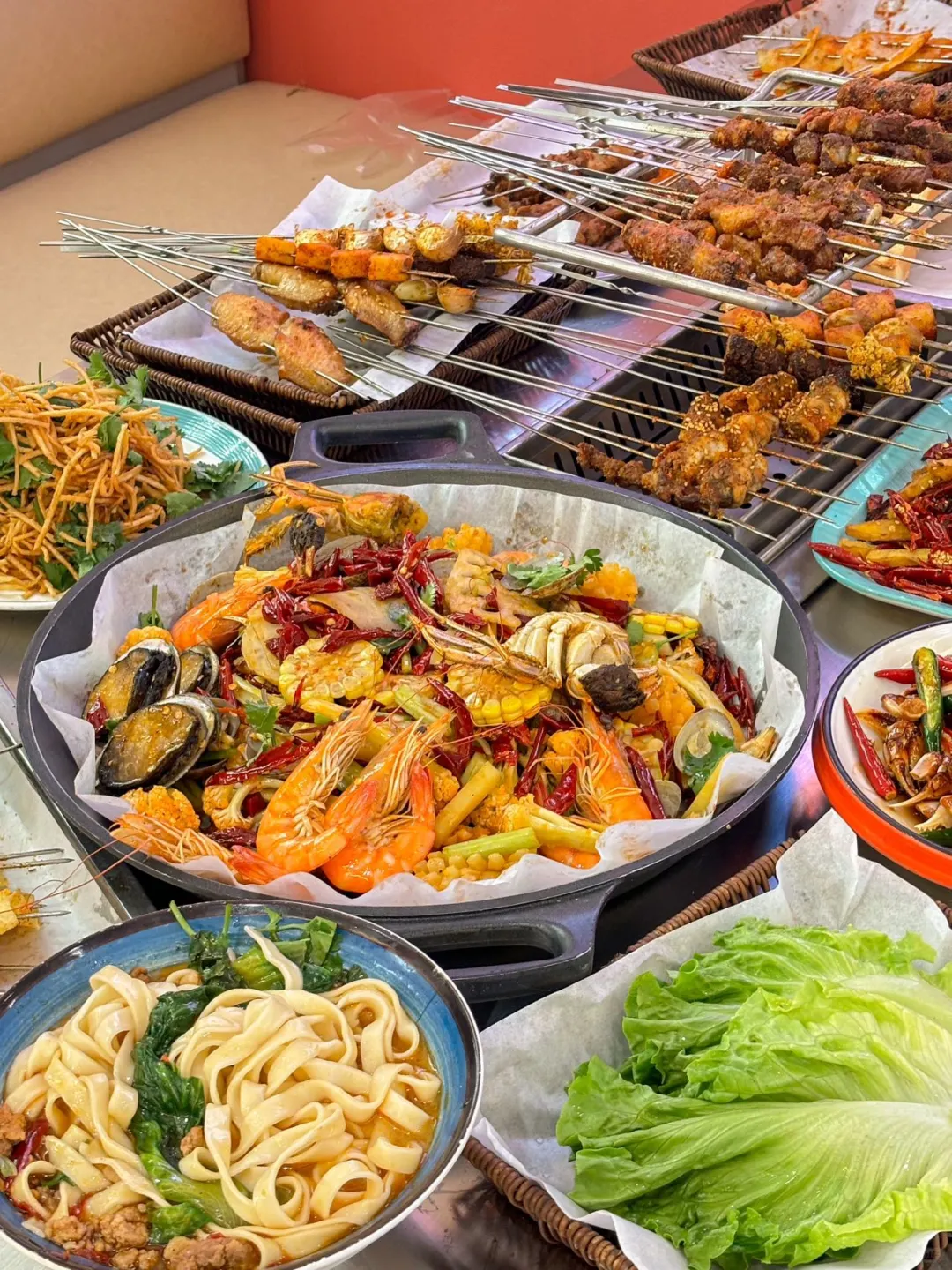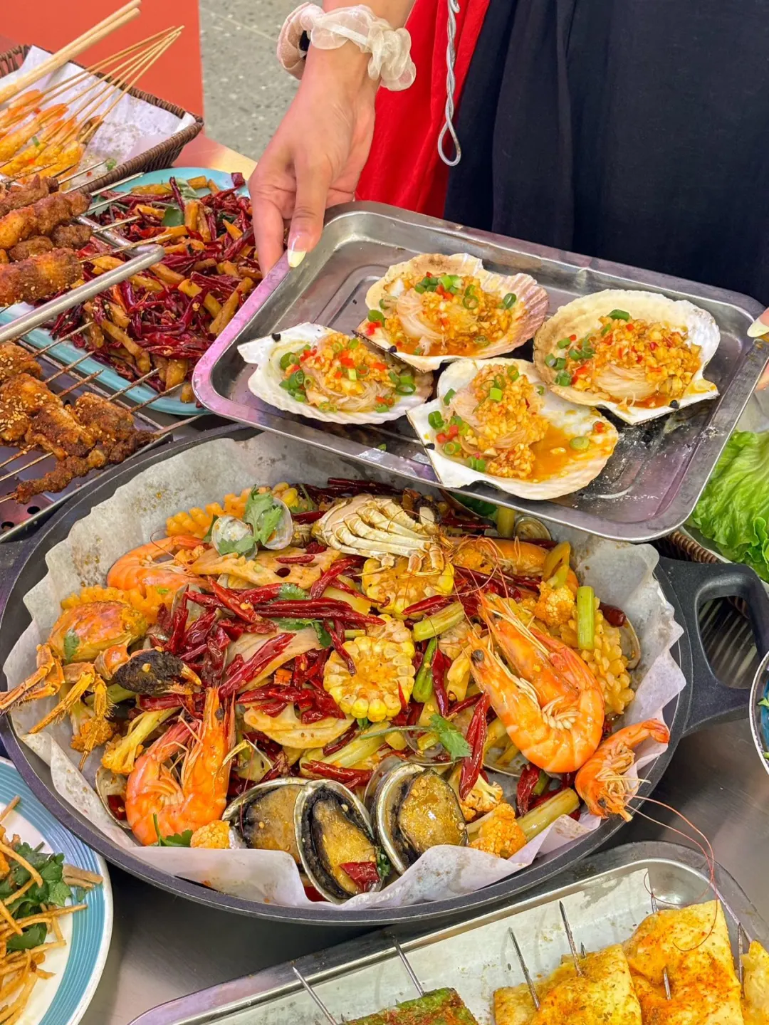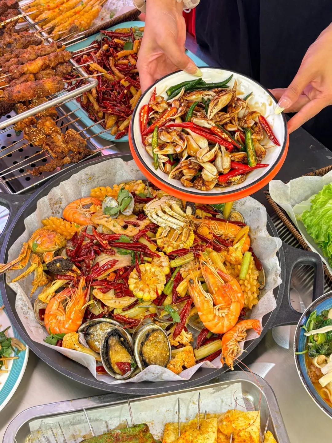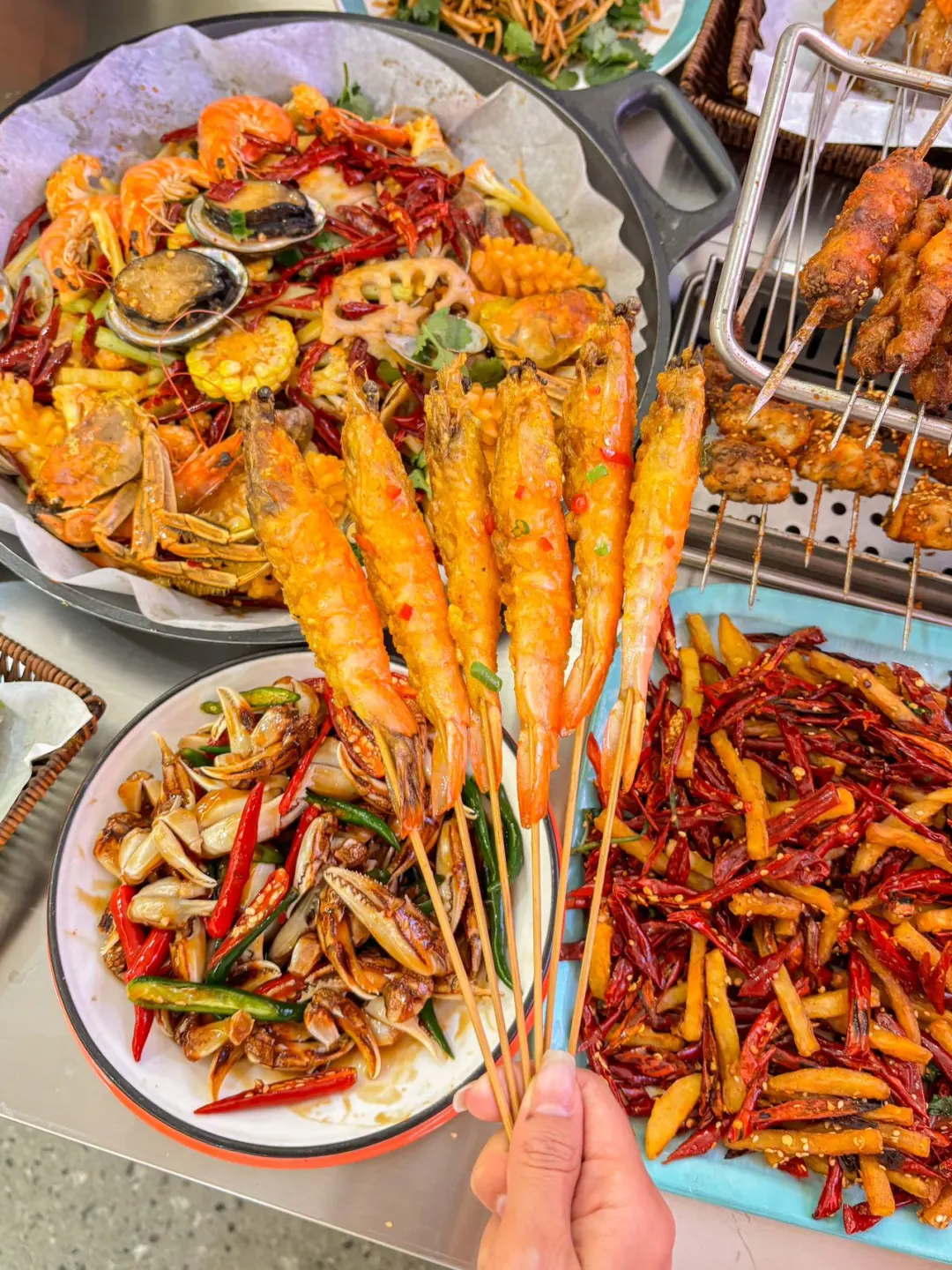 还真找不到哇!!藏的太深啦 就在鼓楼广场这边! 海鲜➕烧烤他家真是很让人满意 像海鲜大咖、烧烤羊肉串这些几乎每次来都会点 现做现处理!!海鲜肉质饱满、而且很干净! 在他家还能吃到烤大虾、烤扇贝、手擀面..但是一口一个大满足!!! 📍西祠海鲜串吧