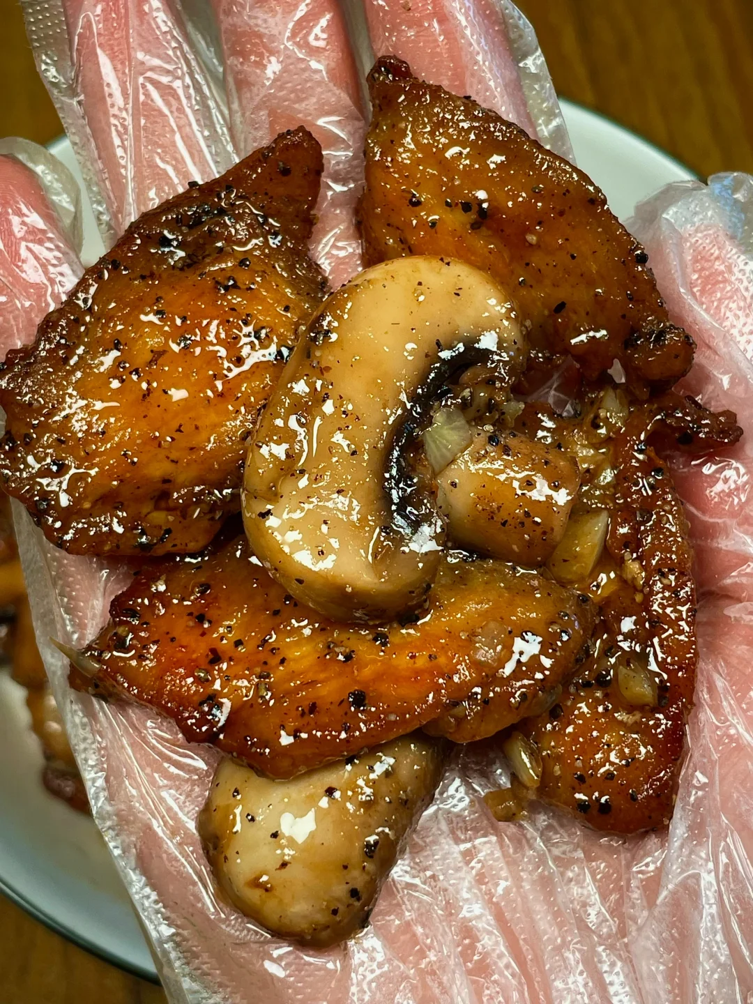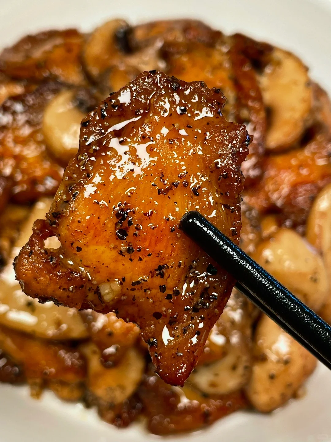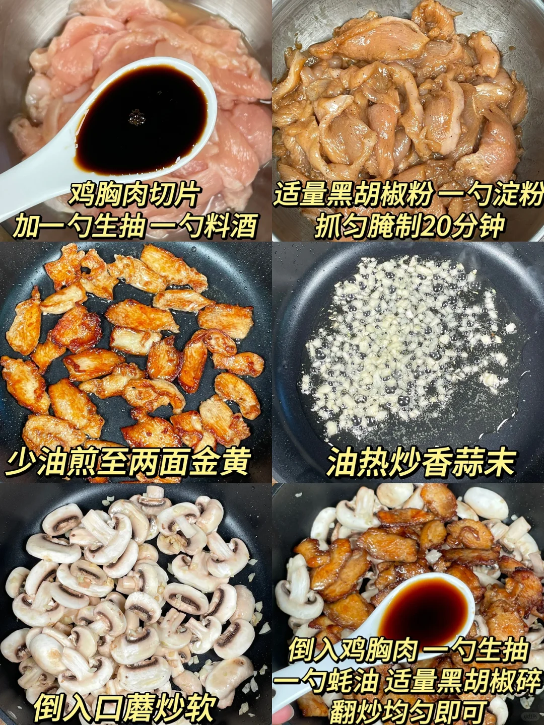 好吃到哭的黑椒口蘑鸡胸肉!一定要去做!! 焦香入味的鸡胸肉,鲜嫩多汁的口蘑,一整个香迷糊[色色R]黑椒味的好吃到停不下来[哭惹R]快安排起来!! [向右R]食材:鸡胸肉➕口蘑➕蒜末 [向右R]做法:如图所示!