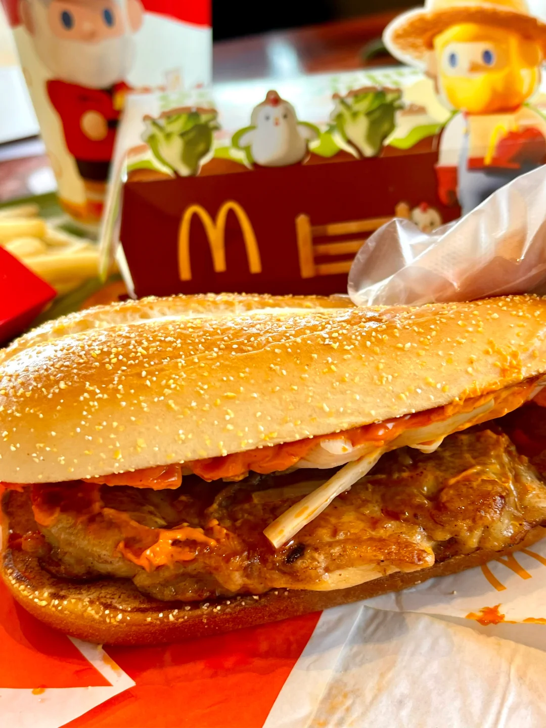 wkk!这周开始麦当劳的板烧升级了! 还🈶️酸笋风味的也回归了~ 🍔新升级的板烧,玉米面包口感更饱满松软,鸡腿肉眼可见的更多汁,口感鲜嫩!生菜更爽脆👍吃了就停不下来…… 而且还get到了心心念的潮玩FARMER BOB的联动💕每周一上新一款(共4⃣️款)喜欢的冲👏 👉板烧堡宝 10.8 👉鸡仔密友 10.14 👉薯条先生 10.21 👉捣蛋爵士 10.28(头套还能取下来)