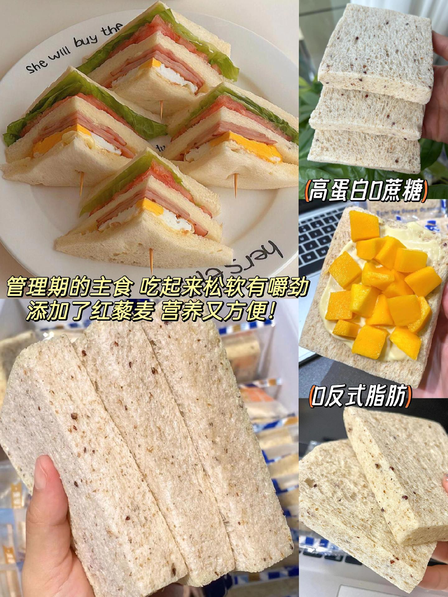 回购无数次的藜麦吐司面包!现在的主食都换成了它!真的太好吃😋管理期用它来代餐真的非常好,吃起来松软有嚼劲,还特别添加了红藜麦,富含蛋白质 膳食纤维,营养又美味,早餐做个三明治,真的很不错呢!特别是不爱做饭的姐妹👭一定要安排起来!