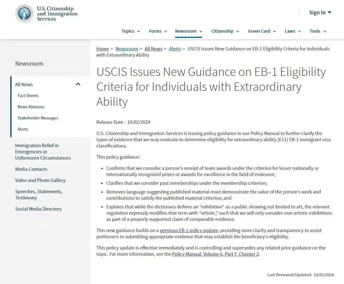 美国移民更局新了EB-1杰A出人才审案册手中的4项定认标准。