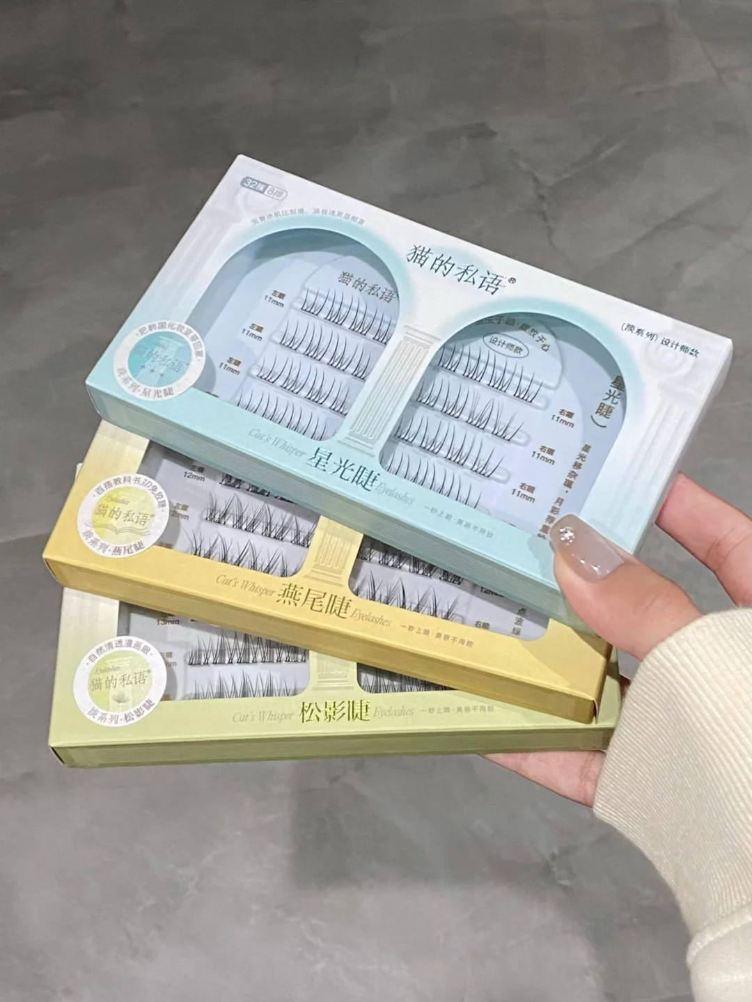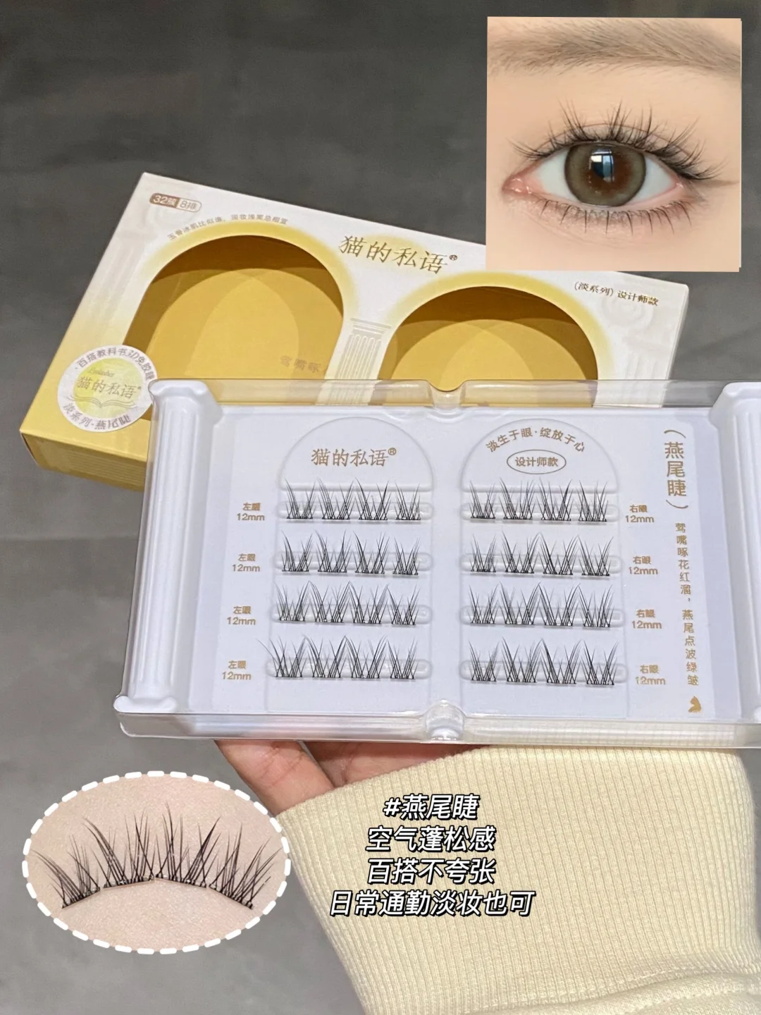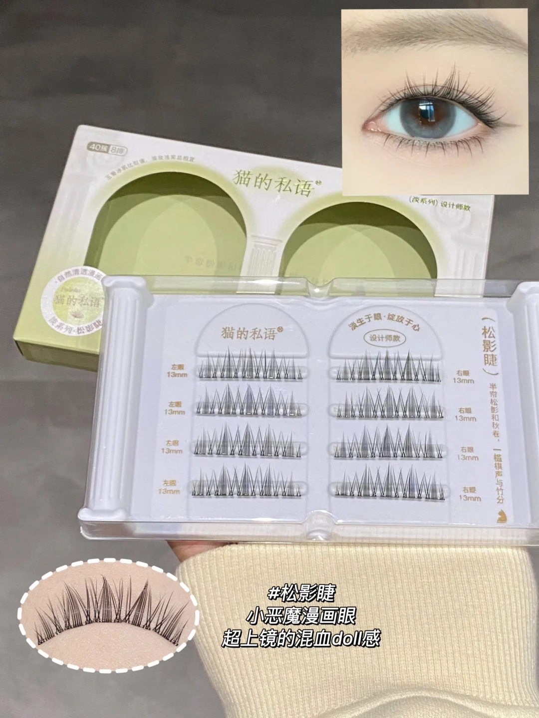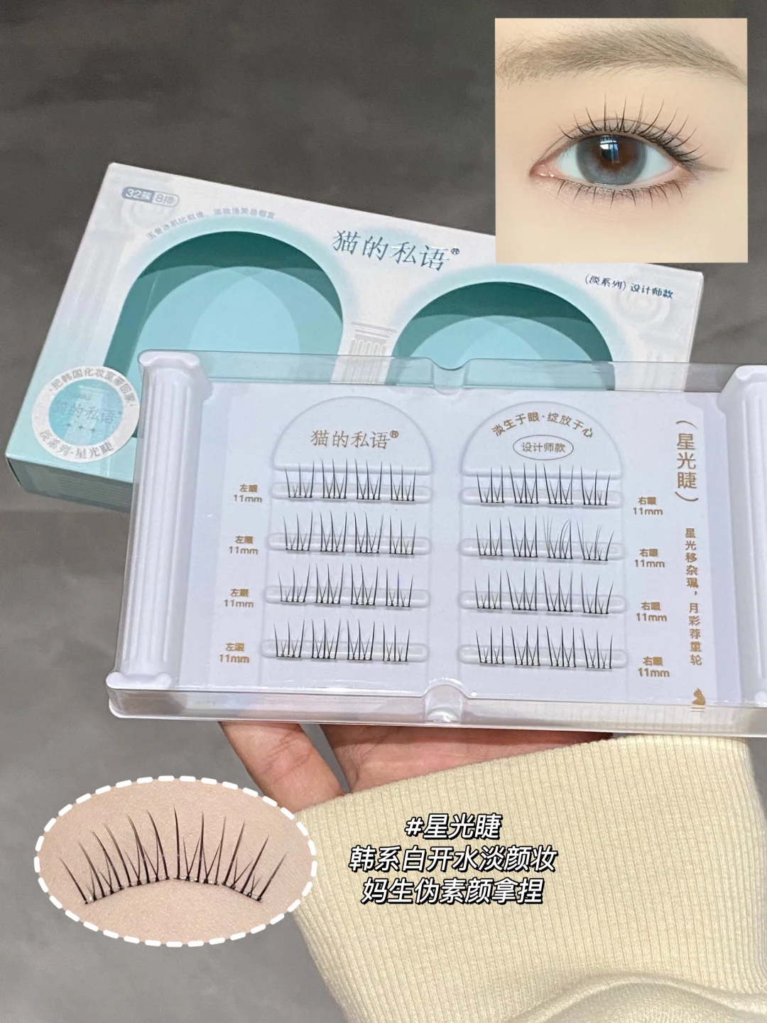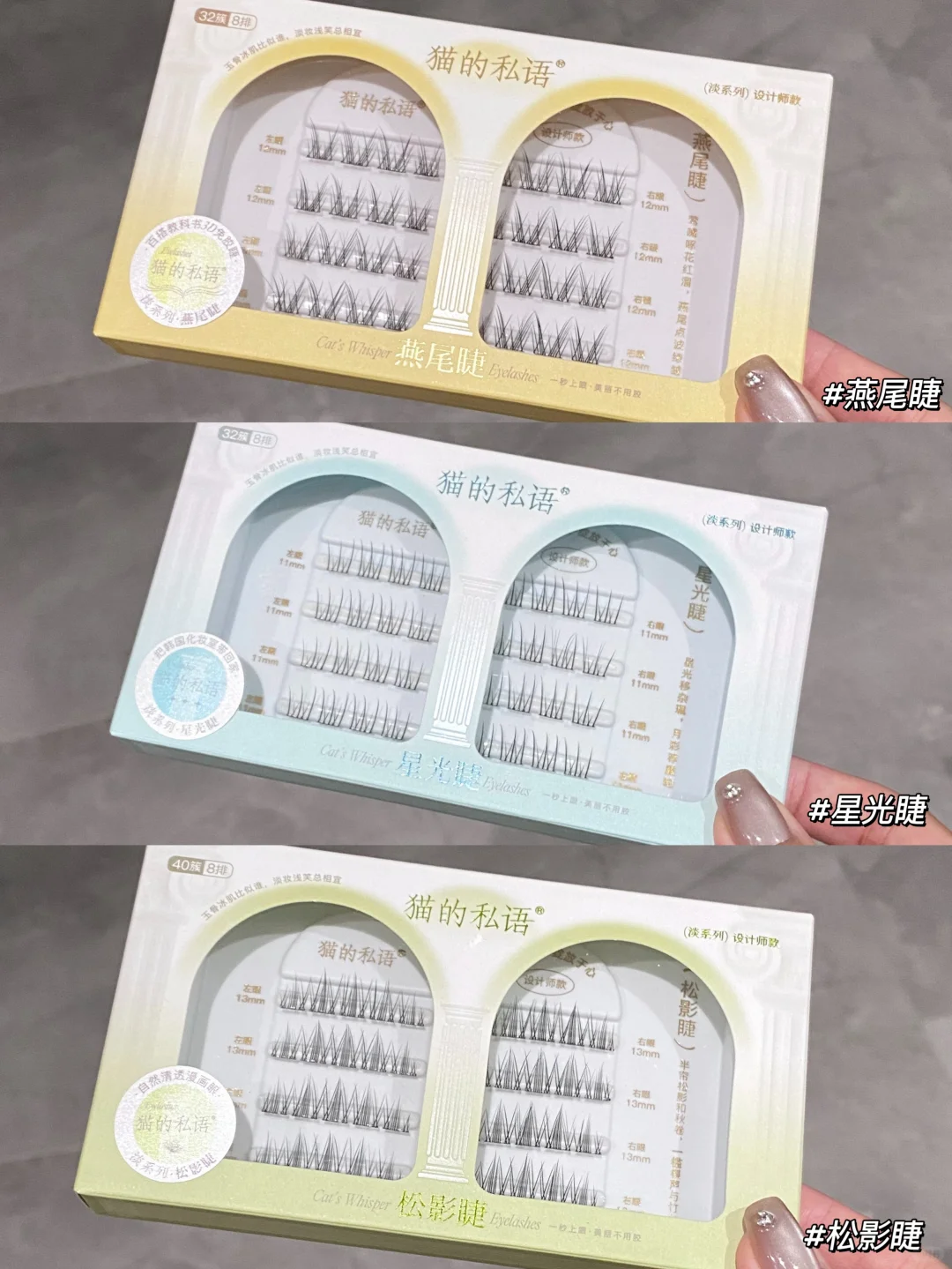 猫的私语新品淡系列! 淡人看一眼就会爱上的超自然妈生睫 三款直接allin啦 免胶免卸真的夸累了 懒人滴神!! 🪶燕尾睫 空气蓬松感 百搭不夸张 日常通勤淡妆也能hold住 ✨星光睫 韩系白开水天配! 想要妈生伪素颜 就选这个! 🌲松影睫 小恶魔漫画眼 超上镜的doll感睫 甜酷风拿捏!