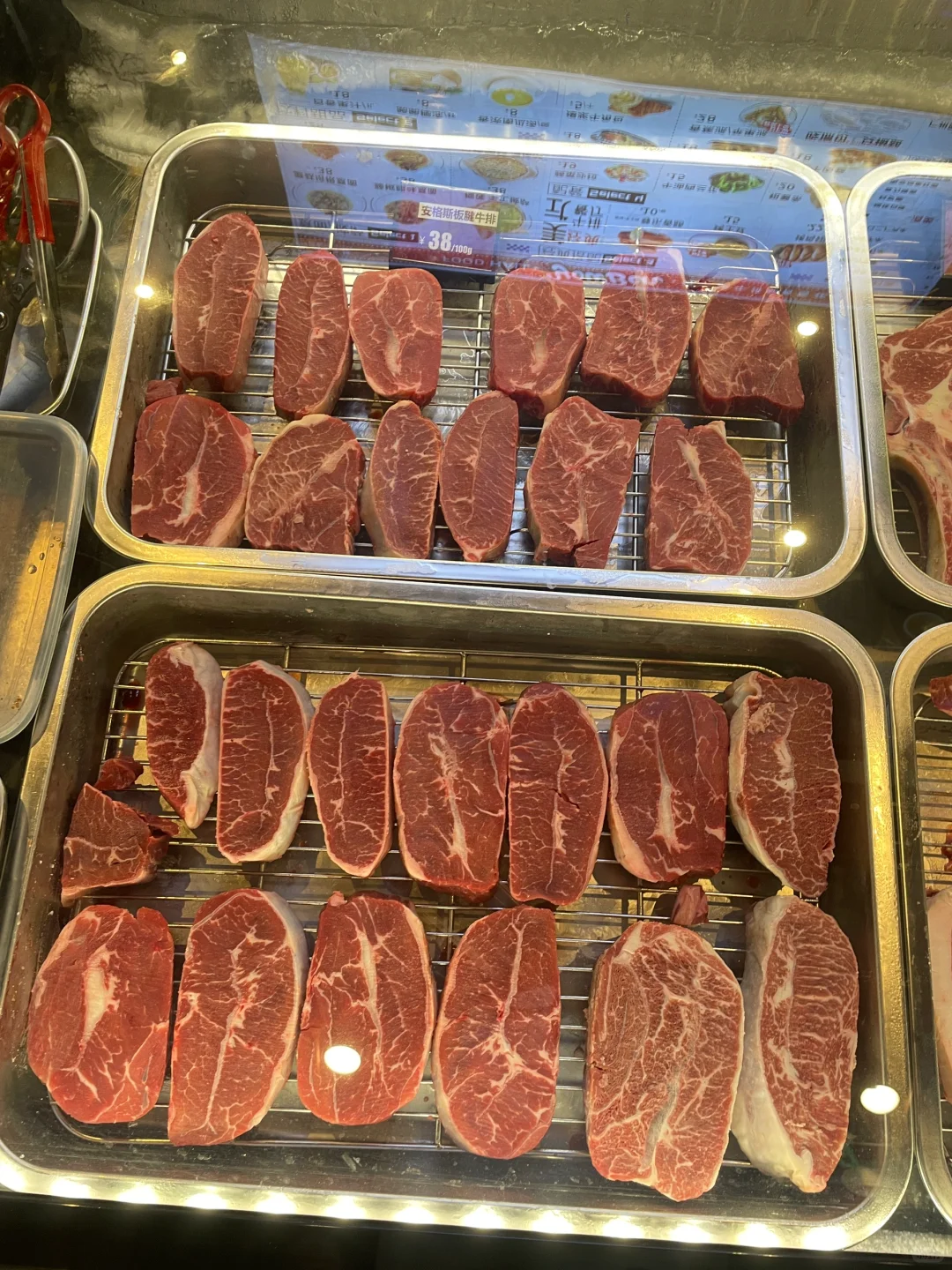 🥩品种繁多,冰柜自选,现点现称,新鲜看得见!