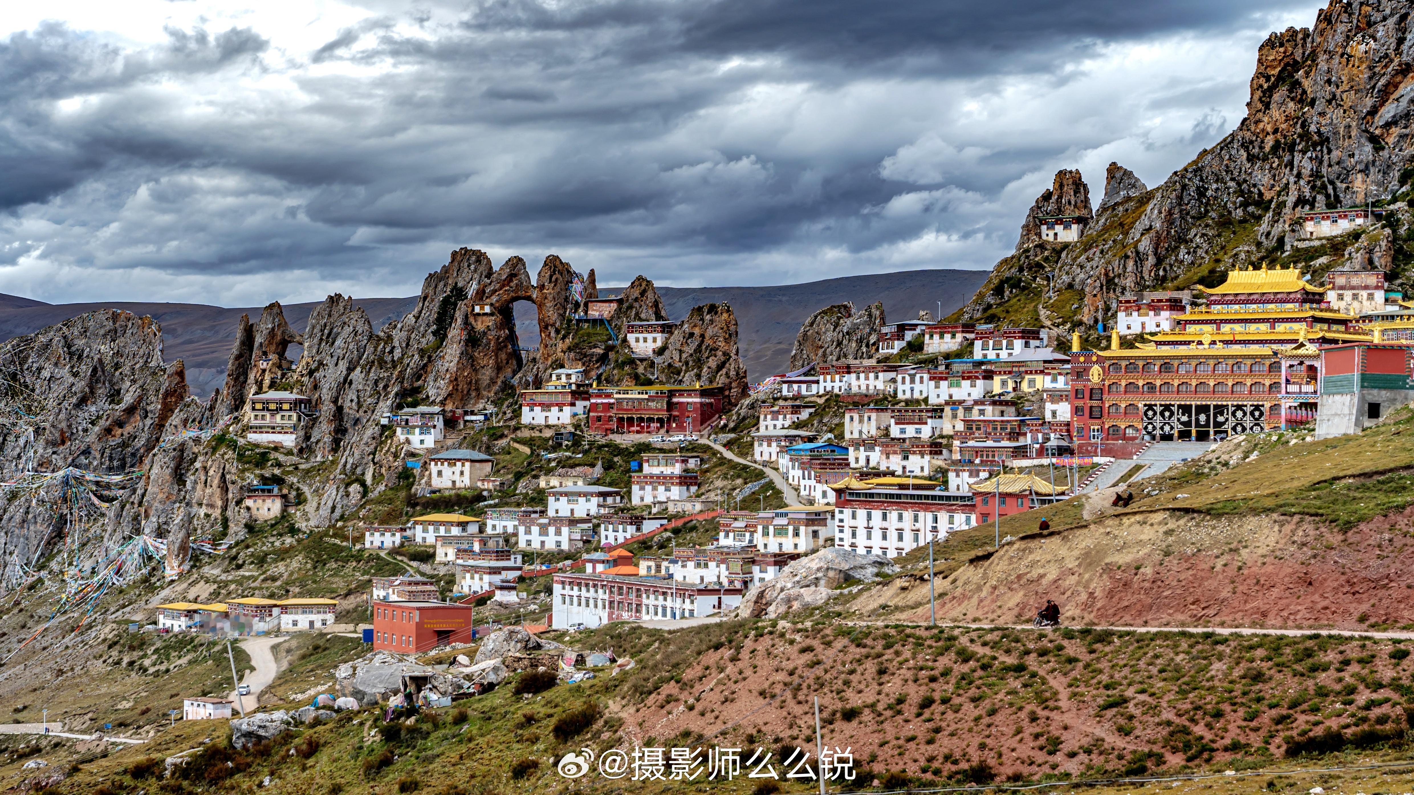 海拔四千多米的孜珠寺,彷佛建在山巅的空中宫殿,漫山经幡随风飞舞,梵音鸣鸣,气势恢宏。