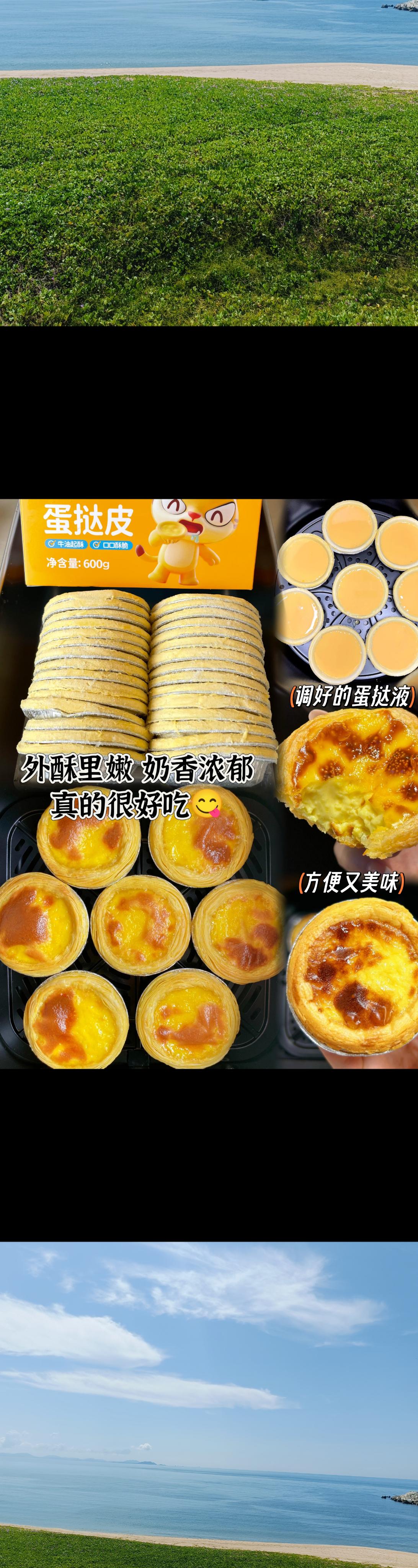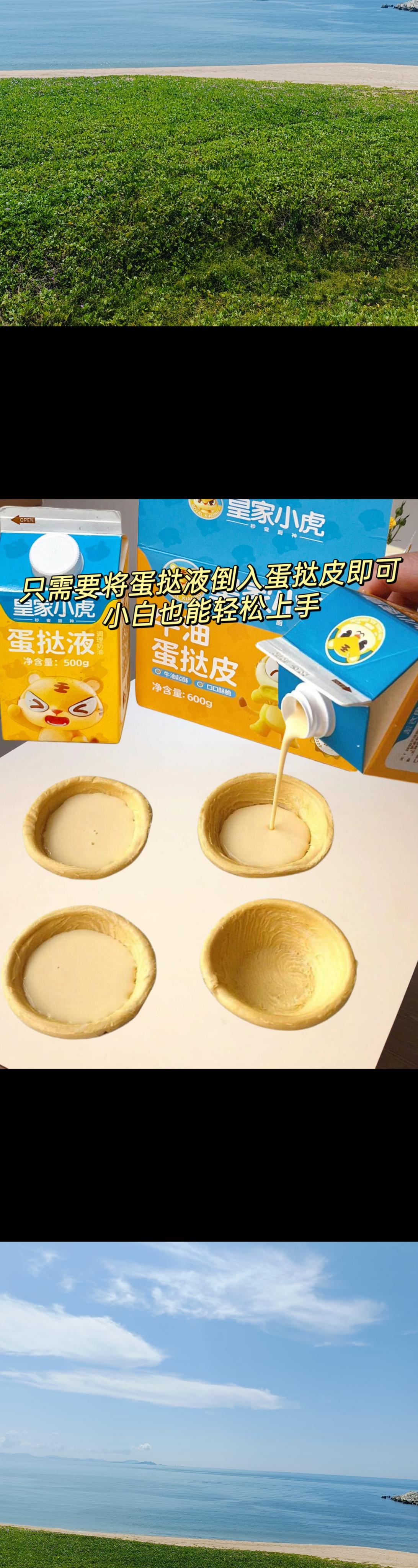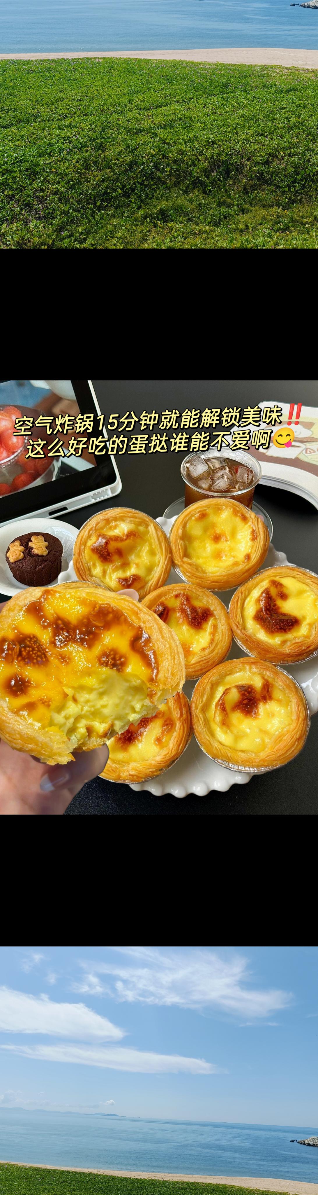 在家实现蛋挞自由了!皇家小虎半成品蛋挞皮和蛋挞液真的巨方便还省事! 做法如下: 蛋挞皮和蛋挞液常温解冻 1.把蛋挞皮摆放在空气炸锅 2.把蛋挞液倒进去8分满即可 3.空气炸锅180度15分钟 烤的时候超香的,家里飘满了奶香味😋味道比店里的还好吃!做法简单,厨房小白也可以轻松做的蛋挞~