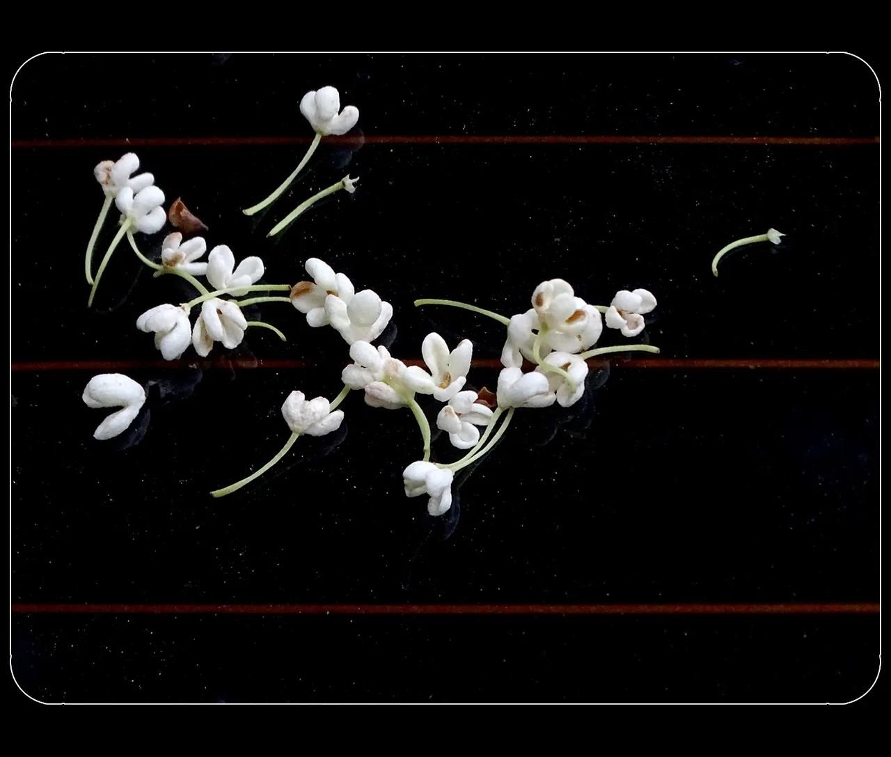 《桂花》 今年迟迟不开的桂花,好像在一眨眼之间全开了。一辆停靠在桂花楼下的汽车上,布满了脱落的桂花。这才发现这名贵的桂花竟然怎么小,小得像是豆芽。 【原创】 #中国摄影圈# #花花草草#