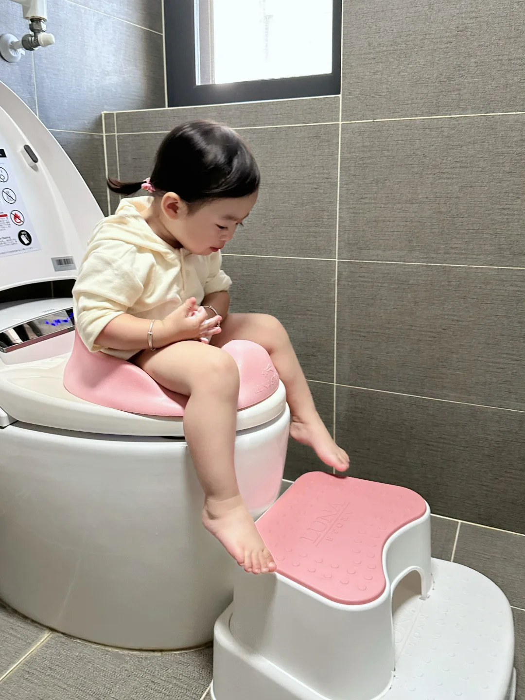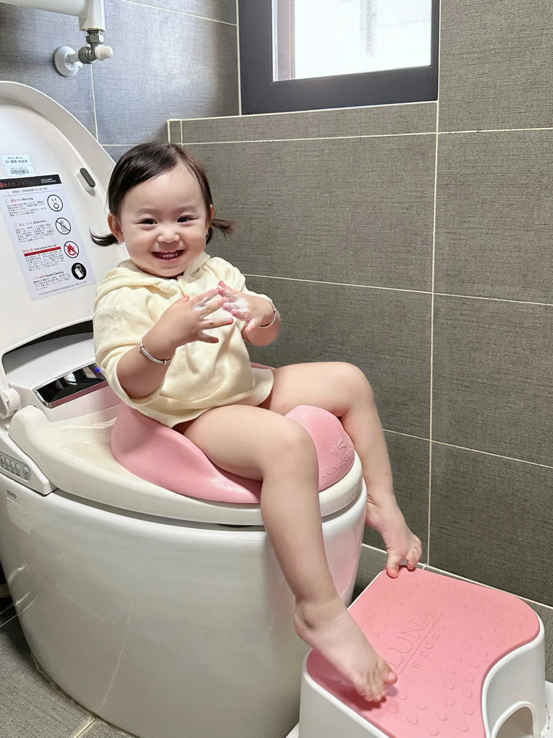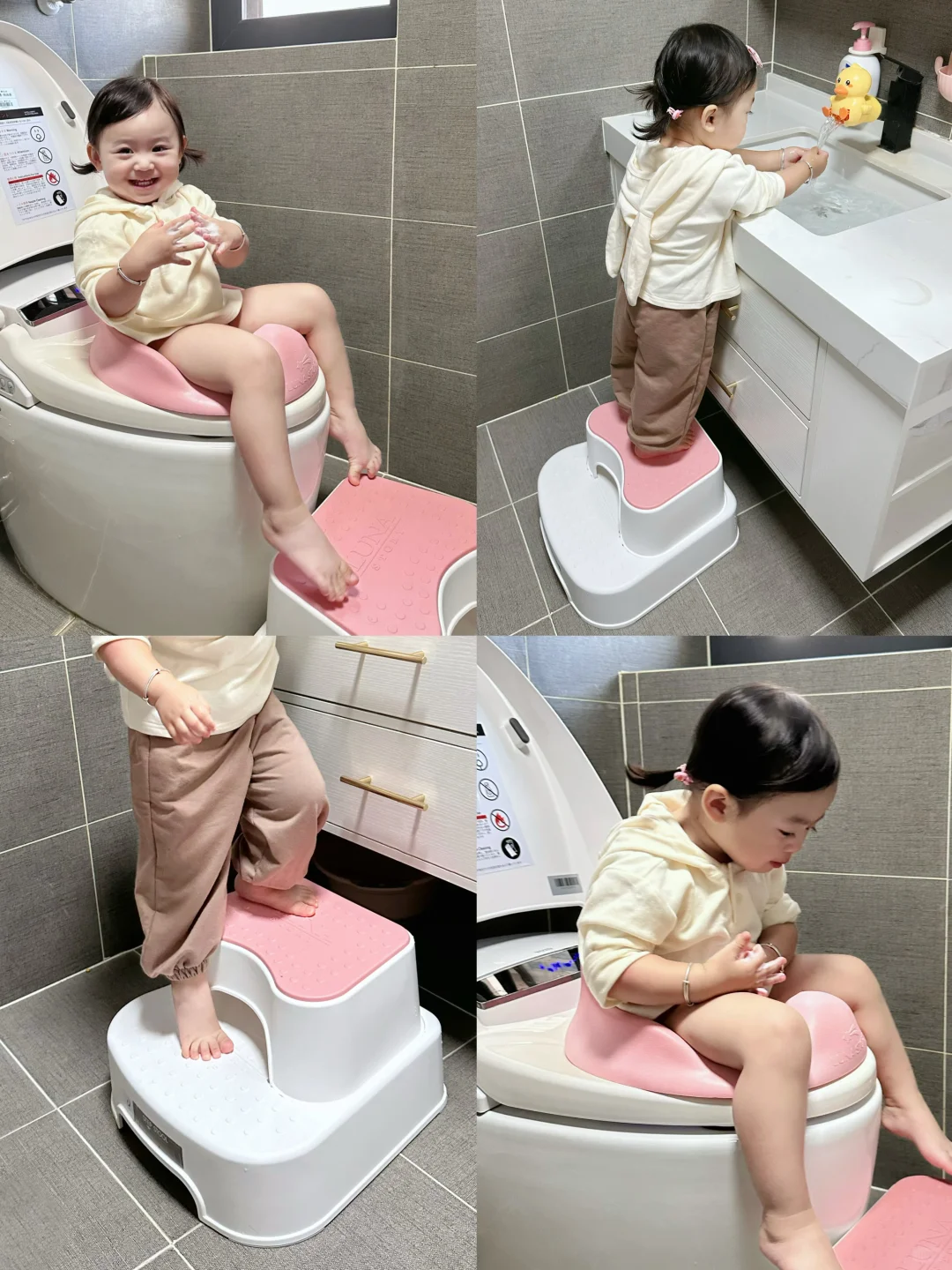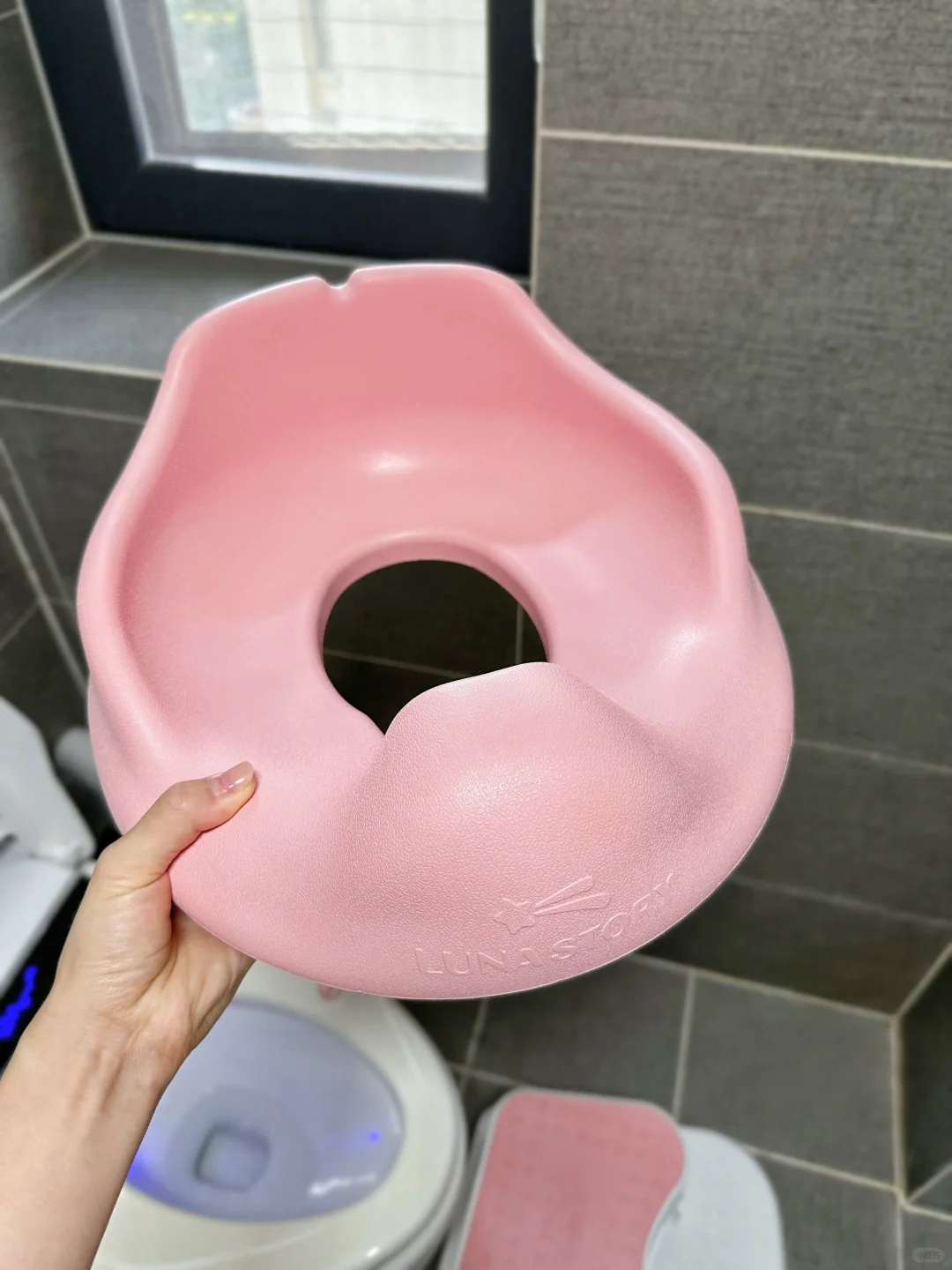 果粒会向我们发出想上厕所的信号了 这正是训练自主如厕的好时候! 入手这个粉粉嫩嫩的马桶圈 直接吸在家用马桶圈上就行 再搭配踩脚凳 小孩姐也能自己坐马桶解决大事儿啦! pu软垫设计,宝宝坐着不会硌pp 平常直接水冲洗就行 不用了还自带挂钩挂起来 一点儿不占空间!超省事!! 准备给娃戒尿不湿的麻麻们快冲它 自主如厕不是梦✌