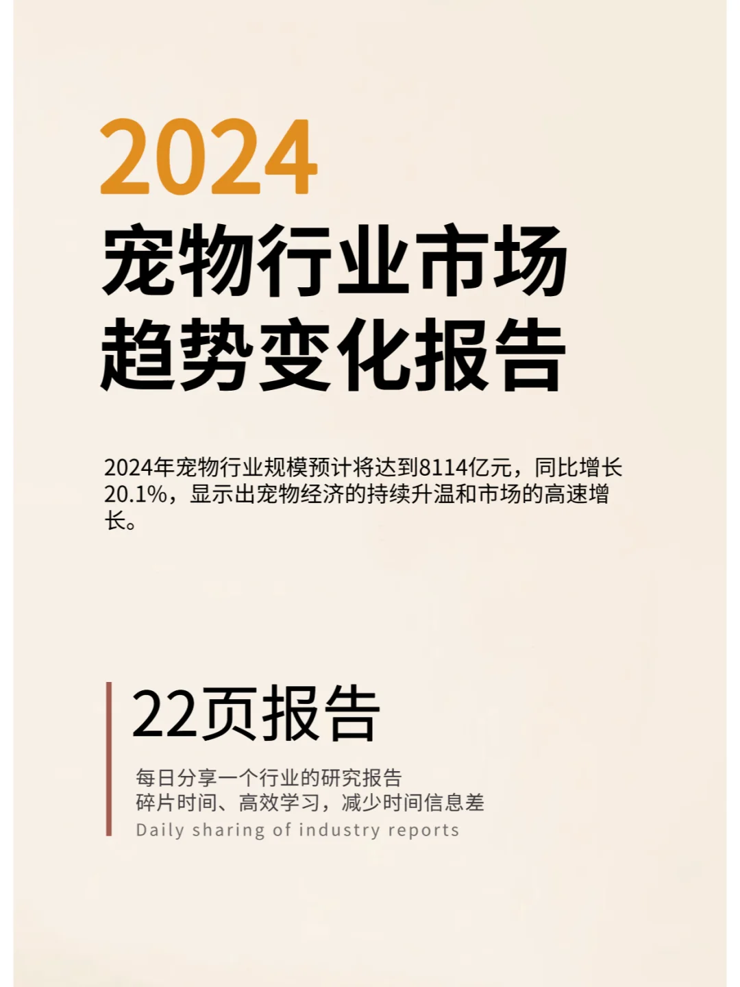 🔍 根据最新的市场报告,2024年宠物行业规模预计将达到8114亿元,同比增长20.1%,显示出宠物经济的持续升温和市场的高速增长。📈